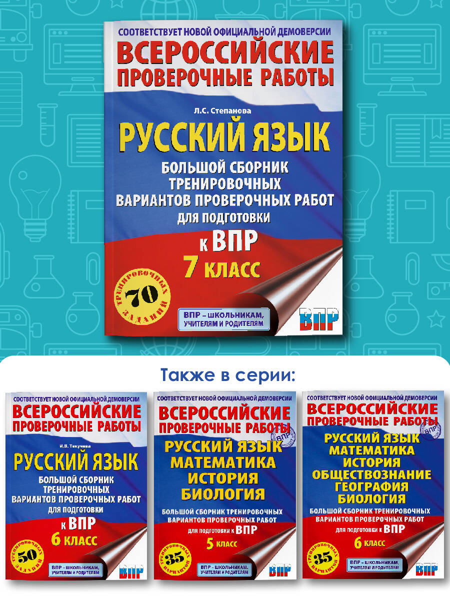 Аннотация: Русский язык. Большой сборник тренировочных вариантов проверочных работ для подготовки к ВПР. 7 класс