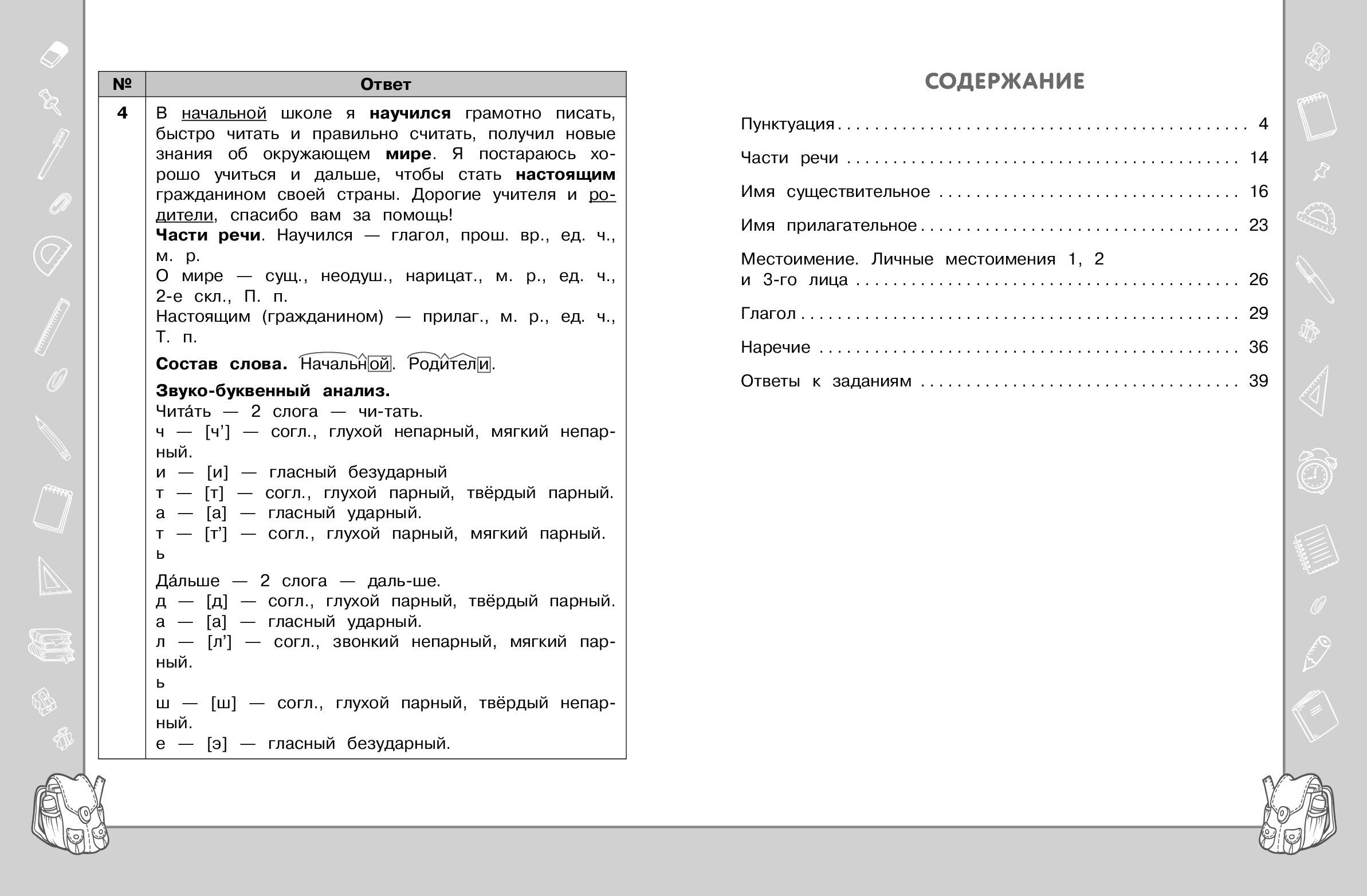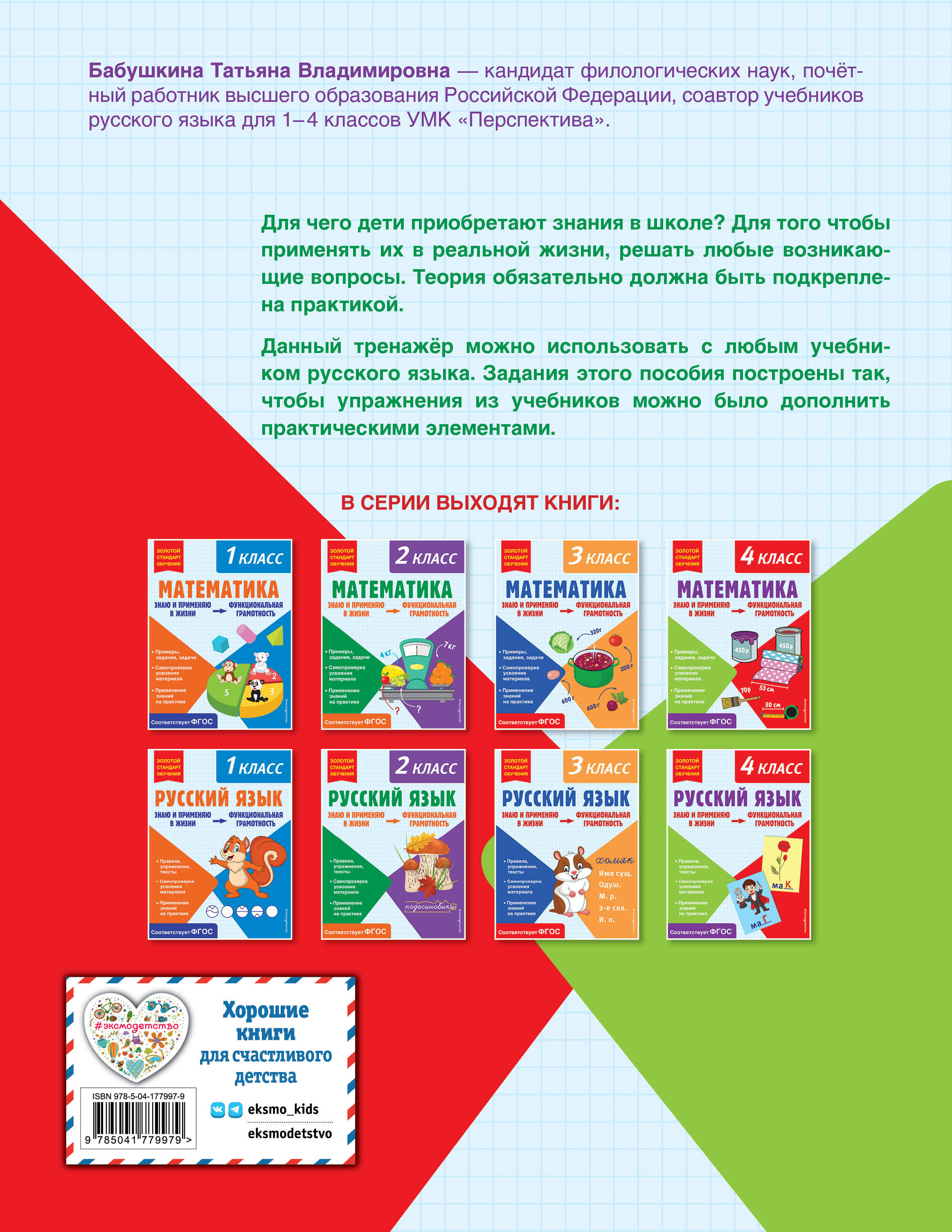 Тренажёр создан с целью научить четвероклассника применять на практике полученные знания. Каждая тема содержит задания как на самостоятельную проверку знаний, так и на их применение для решения самых разных практических задач. Выполнение заданий будет способствовать развитию не только языковой и речевой грамотности школьника, но и его функциональной грамотности. В результате занятий с тренажёром четвероклассник: • самостоятельно выяснит уровень своих знаний; • получит практический опыт их применения; • повысит мотивацию к учёбе.| Издательство | ООО "Издательство "Эксмо" |