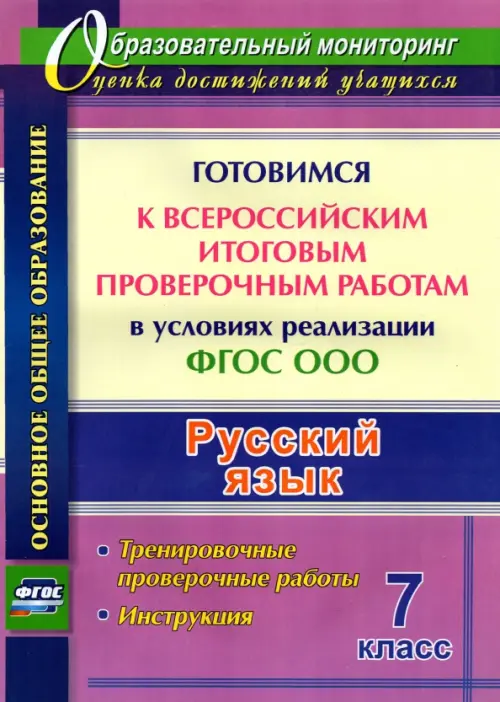 Всероссийская проверочная работа, которую напишут семиклассники, будет включать задания по русскому языку. Практика системы подготовки к проведению такой формы оценки качества образования отвечает требованиям ФГОС ООО и предполагает формирование диагностического ресурса, который позволит школьникам привыкнуть к экзаменам, попробовать свои возможности в регулярном выполнении контрольных работ, оценить уровень реальных знаний и умений, отметить успехи и неудачи. В пособии представлены тренировочные проверочные работы, составленные с учетом типичных ошибок и возникающих при изучении определенных тем трудностей, инструкция по выполнению.