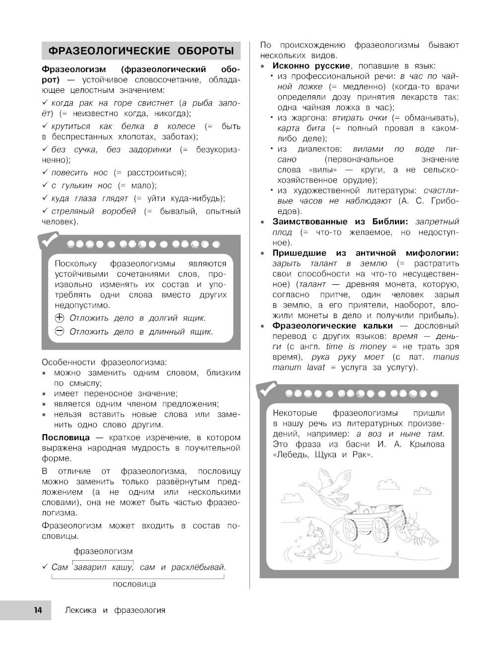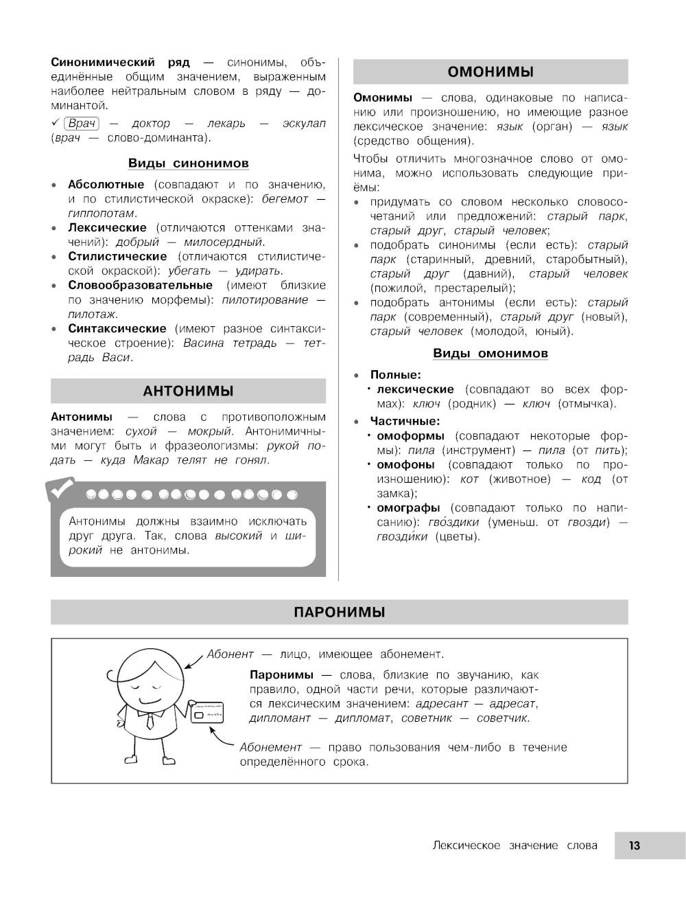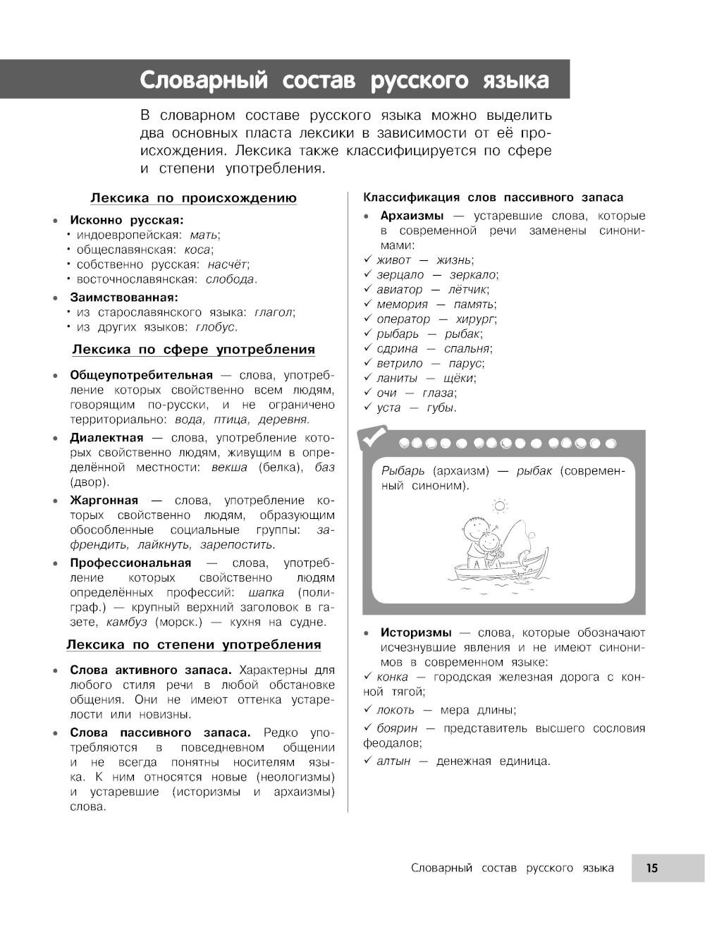 Справочник содержит систематизированную информацию из школьной программы по русскому языку, необходимую для успешной сдачи контрольных и экзаменационных работ, а также ОГЭ и ВПР. Каждая тема разделена на четыре блока: подробные теоретические сведения, разбор типовых заданий, практику для самостоятельной работы и ответы с пояснениями. Все материалы сопровождаются наглядными таблицами, подробными схемами и рисунками. В теории выделены основные термины и факты, которые помогут сконцентрировать внимание школьника на наиболее важных аспектах темы. Пособие поможет закрепить все полученные в школе знания и обеспечит эффективную подготовку учеников 5-9 классов к урокам и экзаменам. Также книга будет полезна репетиторам и учителям при планировании и проведении занятий.| Издательство | Эксмо |