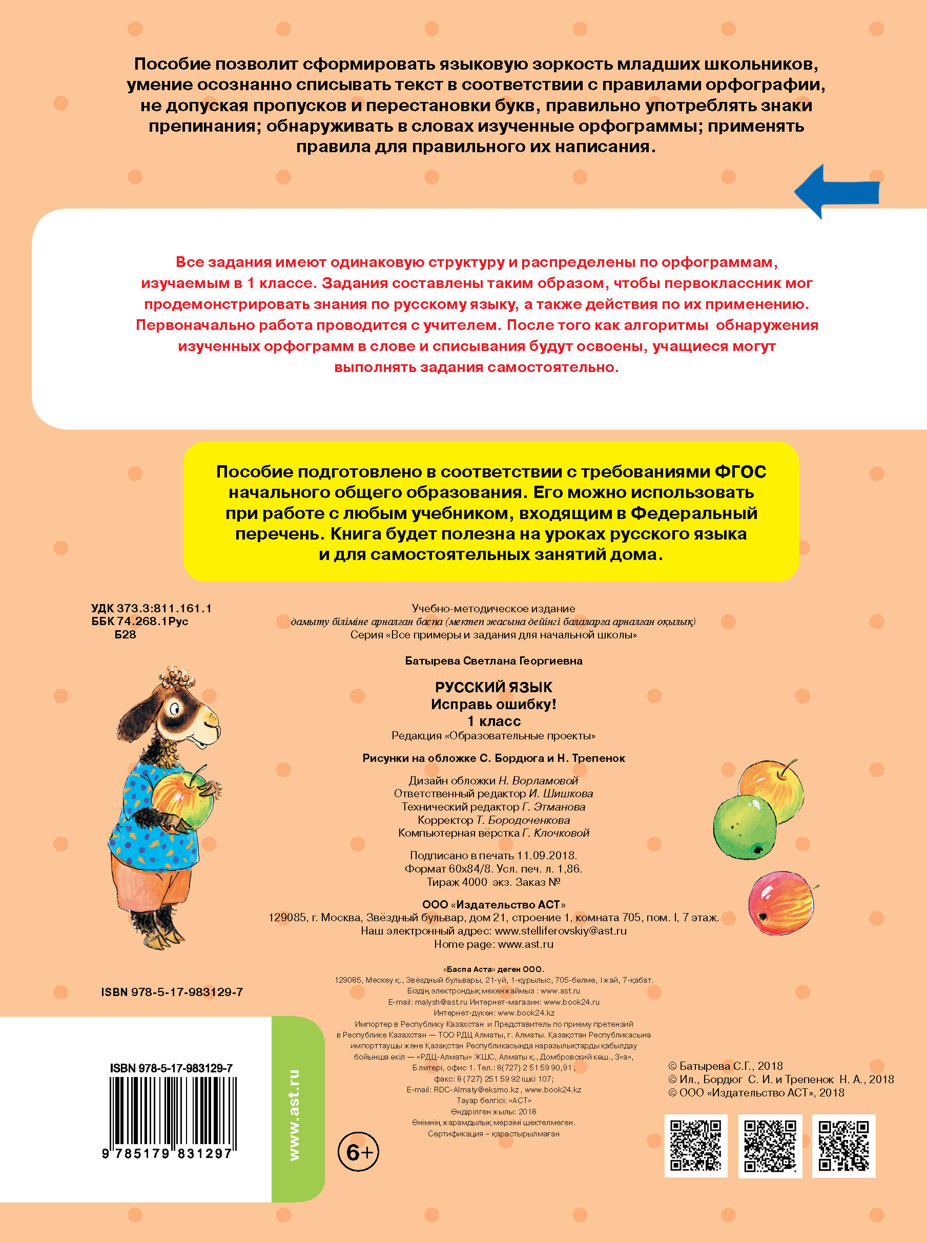 Аннотация: Русский язык. Исправь ошибку. 1 класс