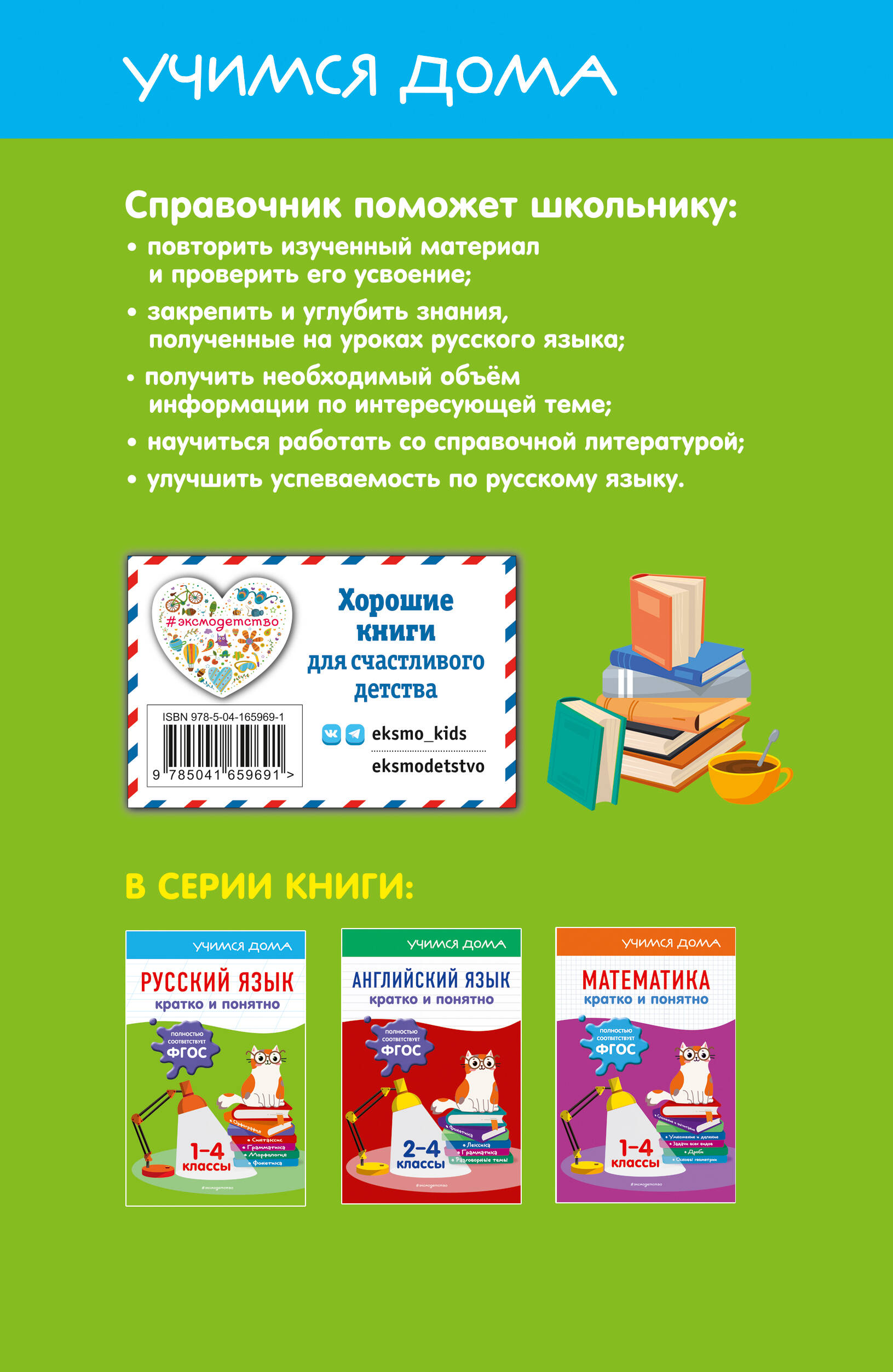 Справочник для учеников 1-4 классов удобен и прост в использовании. В пособии представлен весь материал начальной школы по русскому языку: орфография, синтаксис, грамматика, морфология и фонетика. Все правила и определения даны кратко и понятно в виде логических блоков, схем и таблиц, что делает поиск и запоминание информации быстрыми и лёгкими. Материал разработан в соответствии с последними требованиями ФГОС начального общего образования.| Издательство | Эксмо |