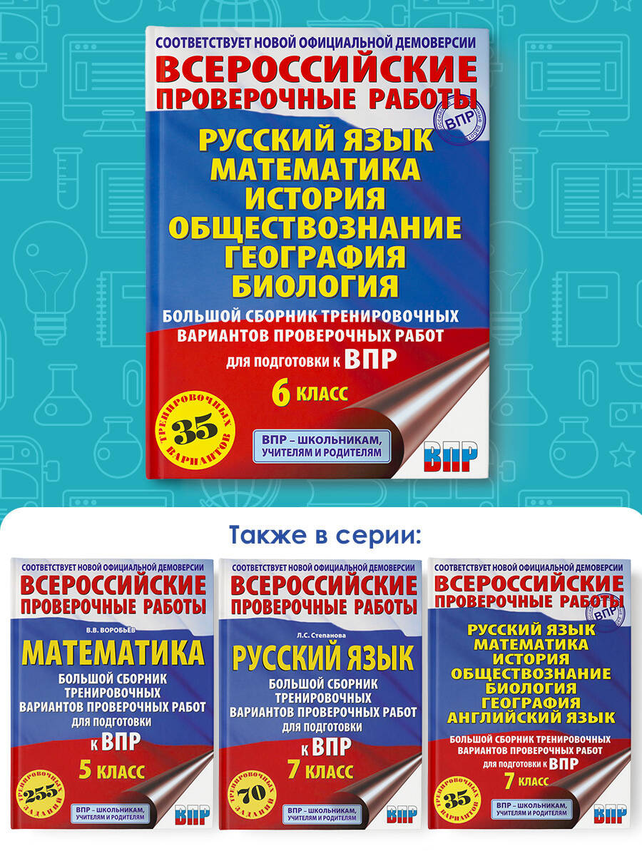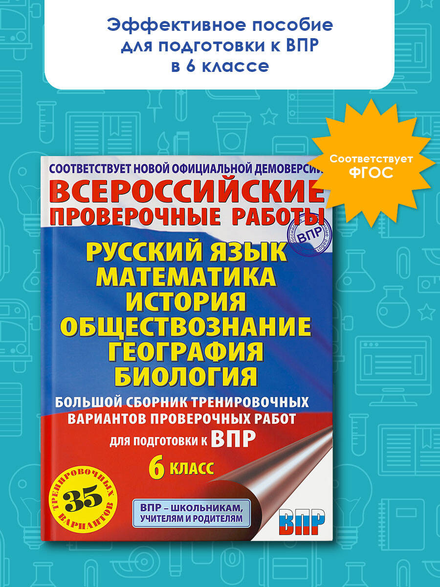 Аннотация: Русский язык. Математика. История. Обществознание. География. Биология. Большой сборник тренировочных вариантов проверочных работ для подготовки к ВПР. 6 класс