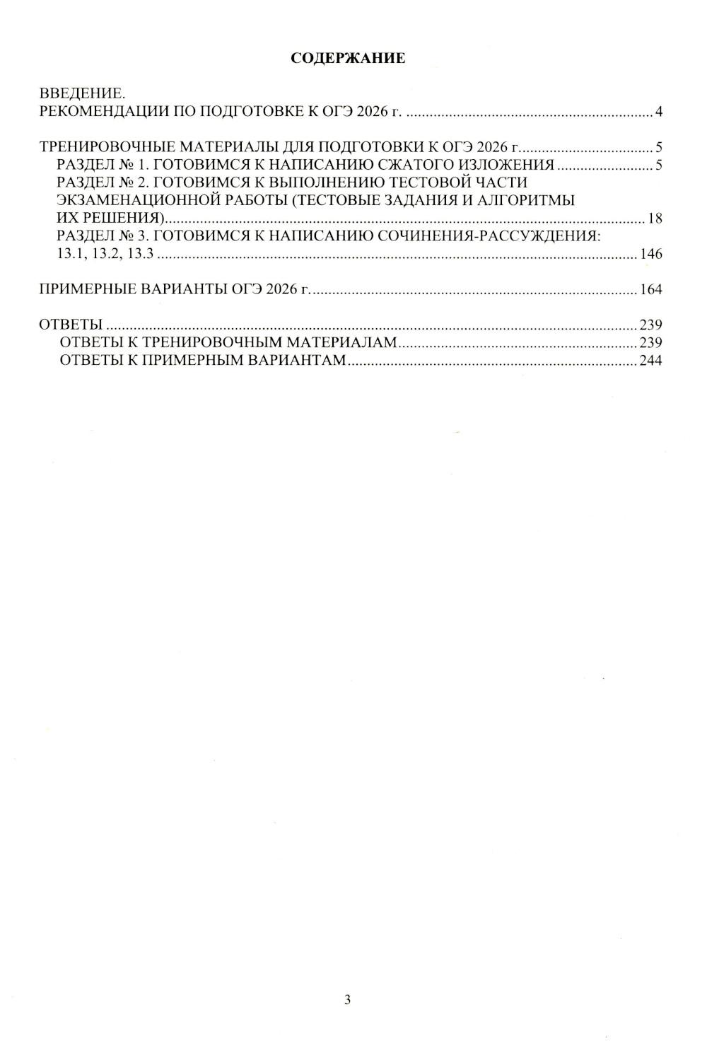 Данное пособие предназначено для подготовки учащихся 9 классов к государственной итоговой аттестации - Основному государственному экзамену (ОГЭ) по русскому языку. В пособии подробно рассматривается структура, содержание возможных контрольноизмерительных материалов, предлагаемых на экзамене. Содержатся методические рекомендации по написанию сжатого изложения, приводятся виды компрессии текста. Предлагаются алгоритмы для написания трёх видов сочинения (13.1, 13.2, 13.3), даются образцы сочинений. Приведён разбор тестовой части, для её выполнения излагается необходимый теоретический материал, представленный в сжатой и оптимально структурированной форме. Даны тренировочные задания с методическими указаниями и ответами, что позволяет закрепить полученные знания и подготовиться к сдаче ОГЭ по русскому языку. В конце пособия помещены 10 примерных вариантов тестов в формате ОГЭ 2026 года. Пособие адресовано девятиклассникам, родителям, учителям и методистам.| Издательство | Интеллект-Центр |