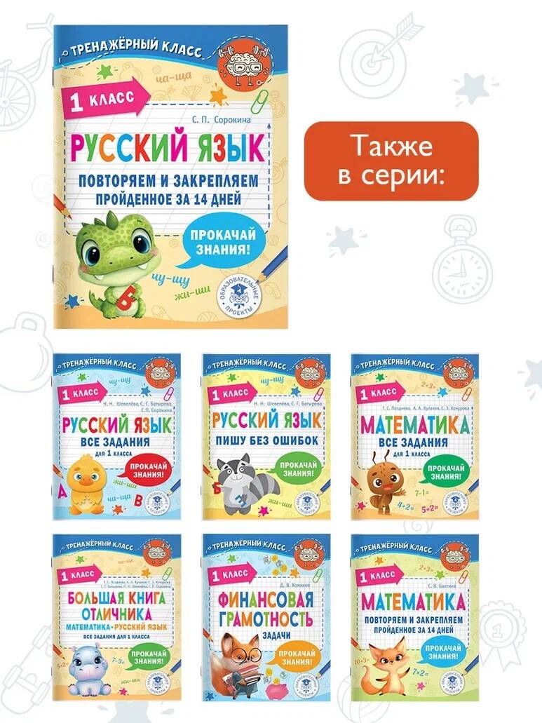 Пособие поможет вашему ребёнку быстро и качественно повторить весь школьный курс русского языка за 1-й класс. В книге представлены все виды заданий по темам: - звуки и буквы; алфавит - гласные и согласные звуки; - слоги; ударение; перенос слов; - ударные и безударные гласные; - твёрдые и мягкие согласные; мягкий знак - показатель мягкости; - парные звонкие и глухие согласные; - правописание сочетаний ЖИ-ШИ, ЧА֪-ЩА, ЧУ-ЩУ, -ЧК-, -ЧН-; - большая буква в словах; - словарные слова Пособие может быть использовано дома для закрепления изученного материала, во время каникул для быстрого повторения той или иной темы учебного курса, а также на уроках русского языка в школе для проведения самостоятельных работ.| Издательство | ИЗДАТЕЛЬСТВО "АСТ" |