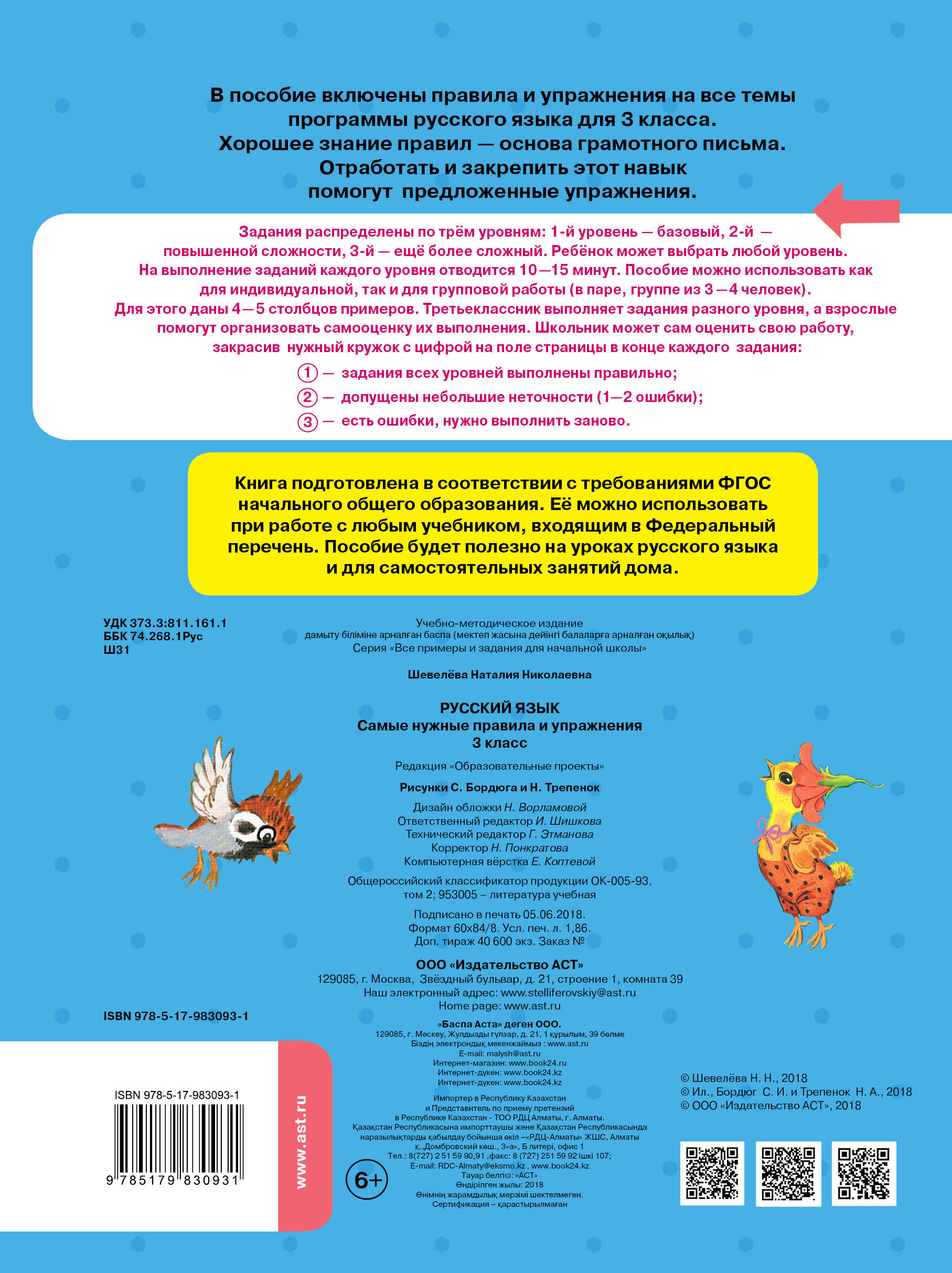 В пособии представлены примеры и задания на все темы и правила школьной программы русского языка для 3 класса. Материалы книги помогут отработать и закрепить навыки грамотного письма.| Издательство | ИЗДАТЕЛЬСТВО "АСТ" |