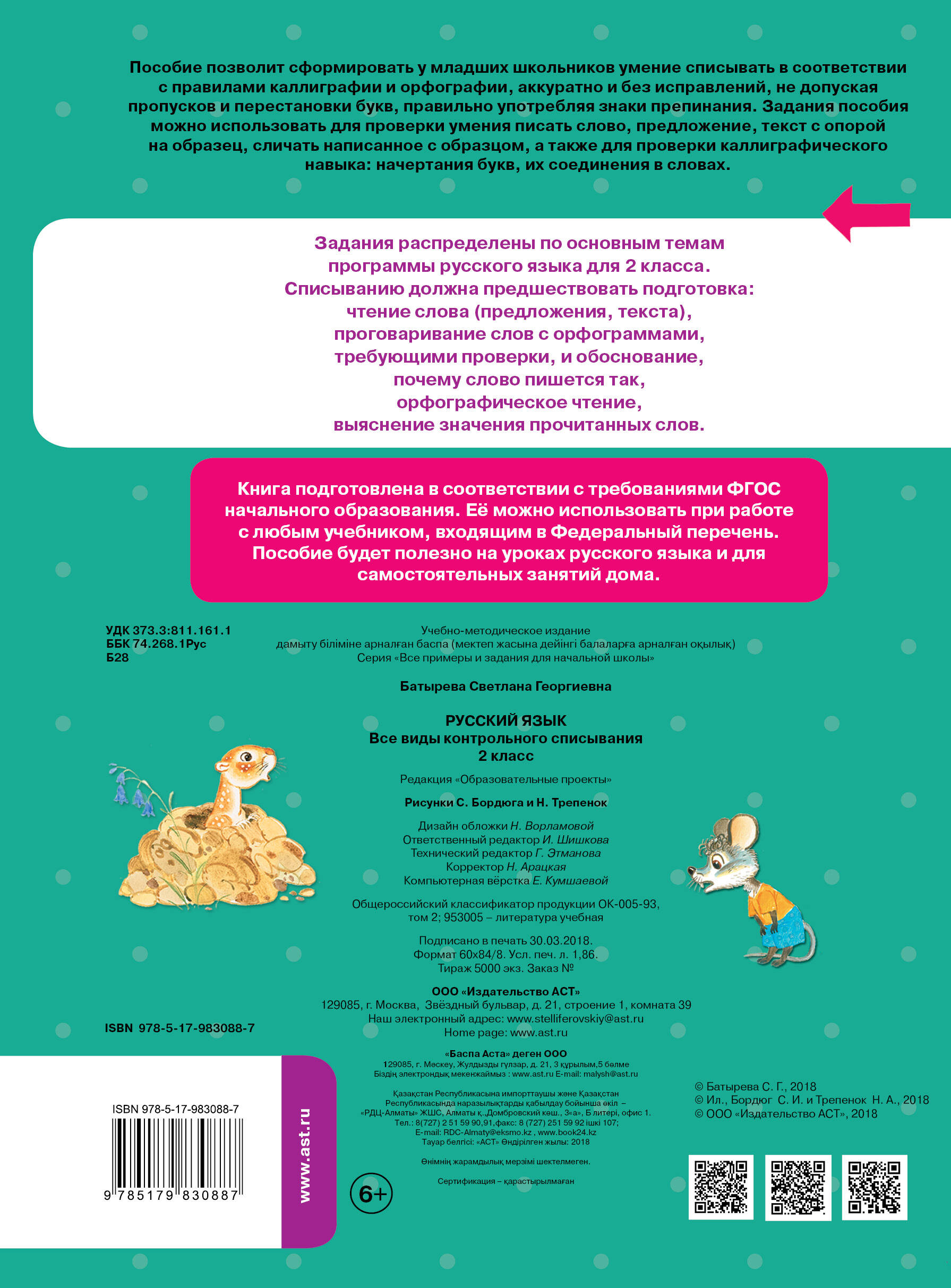 Аннотация: Русский язык. Все виды контрольного списывания. 2 класс
