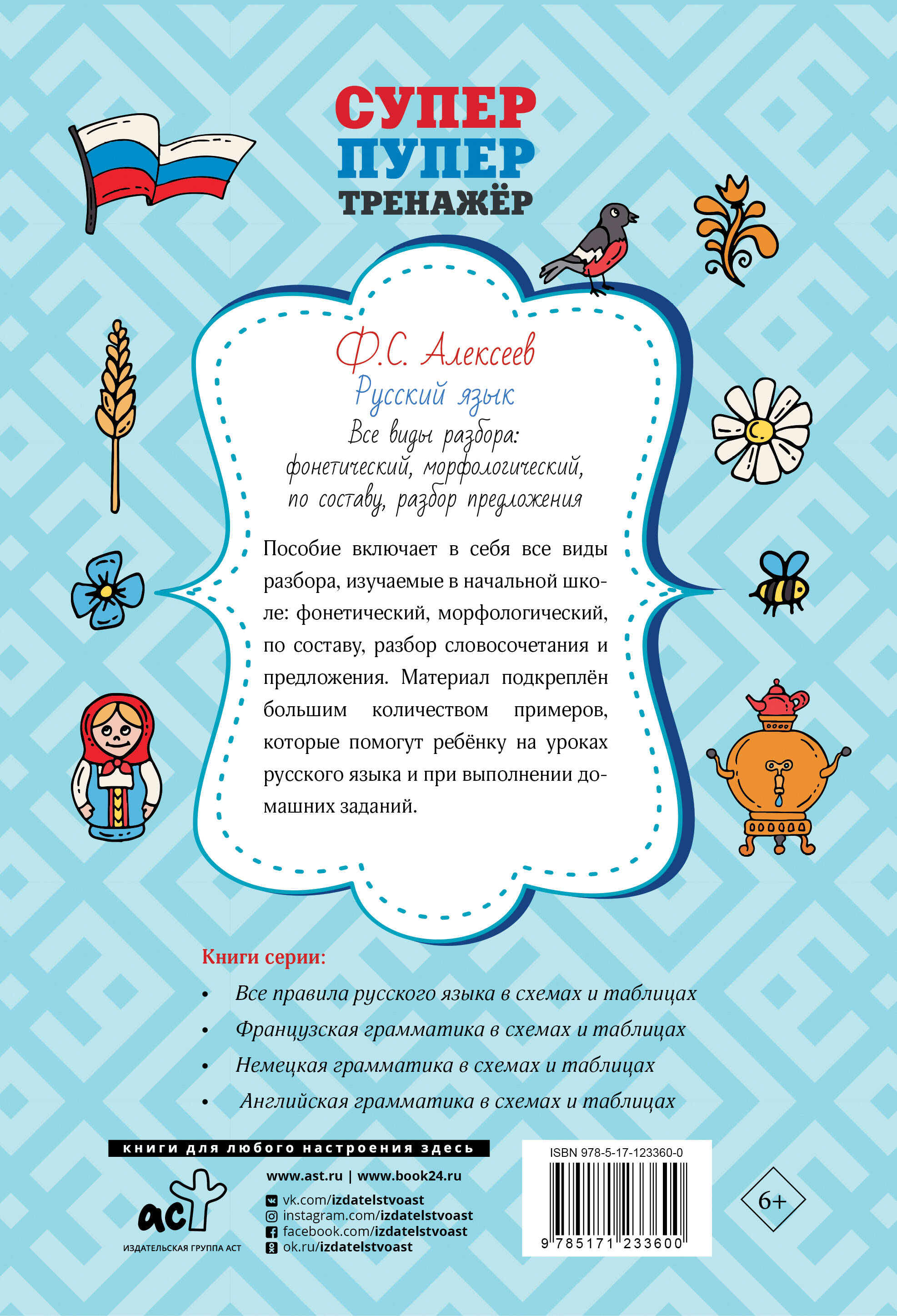 Пособие включает в себя все виды разбора, изучаемые в начальной школе: фонетический, морфологический, по составу, разбор словосочетания и предложения. Материал подкреплён большим количеством примеров, которые помогут ребёнку на уроках русского языка и при выполнении домашних заданий. Пособие предназначено для учащихся начальных классов, а также будет полезно родителям и учителям.| Издательство | ИЗДАТЕЛЬСТВО "АСТ" |