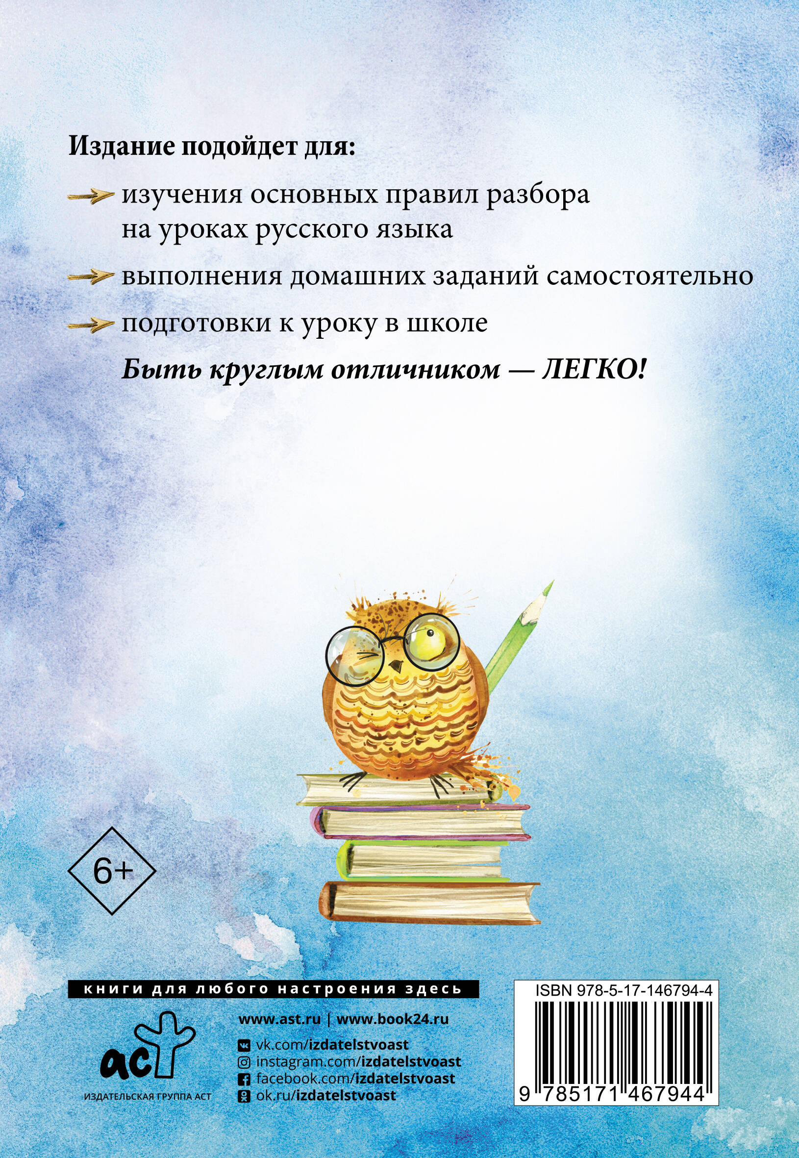 Это пособие станет отличным помощником на уроках русского языка. Оно содержит все виды разбора, изучаемые в начальной школе: фонетический, морфологический, по составу, разбор словосочетания и предложения. Материал сопровождается понятными примерами и иллюстрациями для лучшего запоминания.| Издательство | ИЗДАТЕЛЬСТВО "АСТ" |