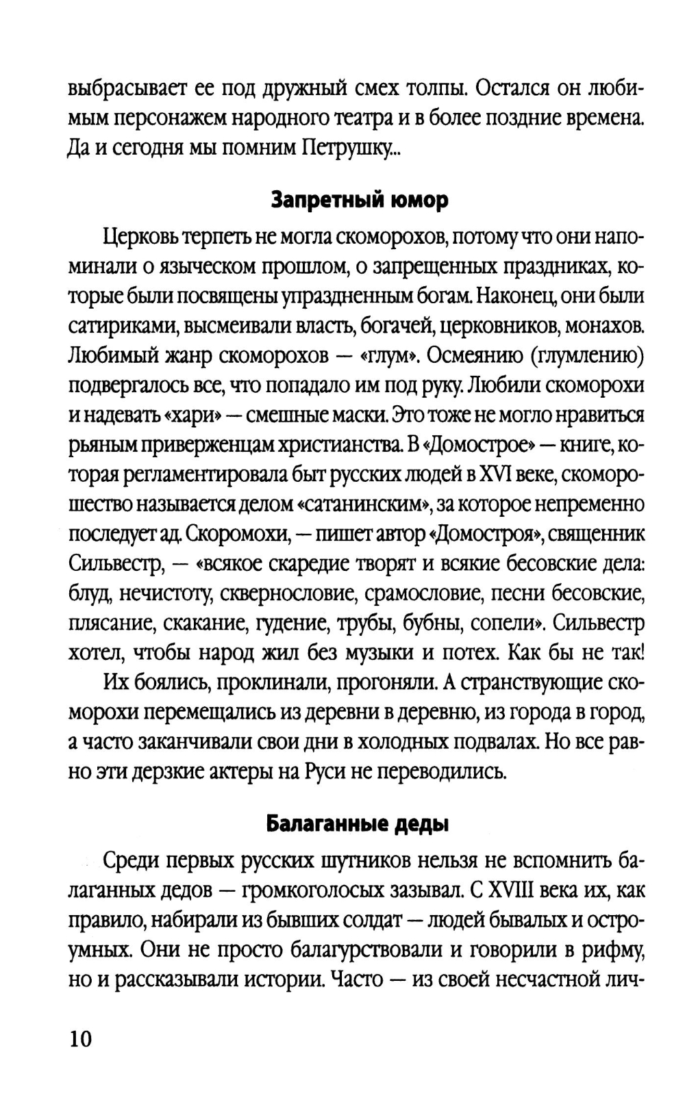 Русская смеховая культура всегда притягивала крупнейших исследователей и всех, кто любит пошутить и интересуется природой юмора. Мы часто говорим об английском, еврейском юморе. А каким был и во многом до сих пор остается русский национальный юмор? Бодрым, задорным, дерзким, часто - оппозиционным. Поэтому первых русских шутников и острословов - скоморохов - преследовали власти. Но они преодолевали все препоны, потому что пользовались народной любовью. В этой книге мы рассказали о судьбах русских балаганщиков, первых актеров, юмористов, анекдотчиков. Вы познакомитесь с шутками, над которыми смеялись наши далекие предки. С тех пор многое поменялось. Но темы, которые мы высмеиваем, остались прежними: богатеи, семейные неурядицы, незадачливые чудаки... Эта книга необходима всем, кто любит шутить по-русски и интересуется особенностями смеховой культуры в нашей стране.| Издательство | Родина |