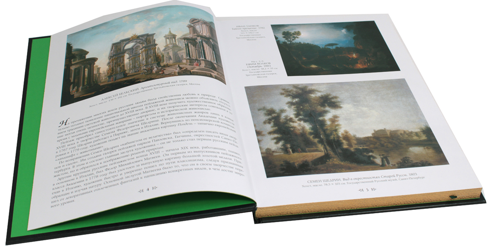 Подарочное издание в кожаном переплете. Особенность нашего альбома - в многообразии различных стилей и жанров, в которых отразились этапы развития русского национального искусства. Декоративность, экспрессия наряду с реалистичным воспроизведением мира - все присутствует на его страницах. Переплет ручной работы. Натуральная переплетная кожа. Каптал из шелковых нитей. Ляссе шелковое. Обрез торшонированный золотой фольгой. Украшение переплета: тиснение полиграфической фольгой, полиграфическая вставка.| Издательство | Воскресный день |