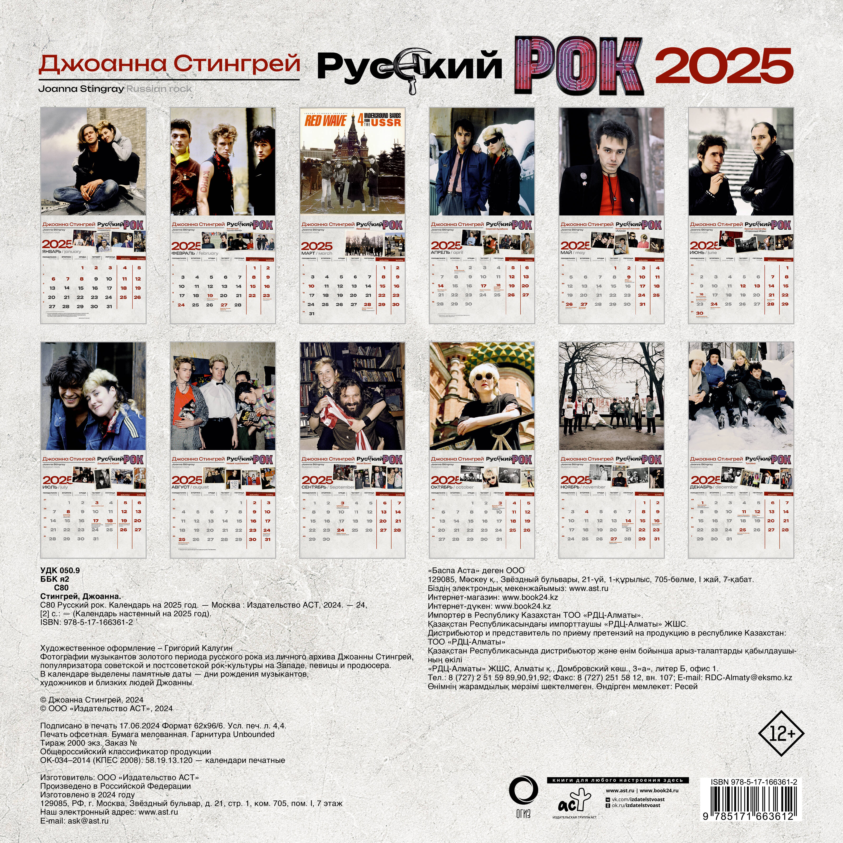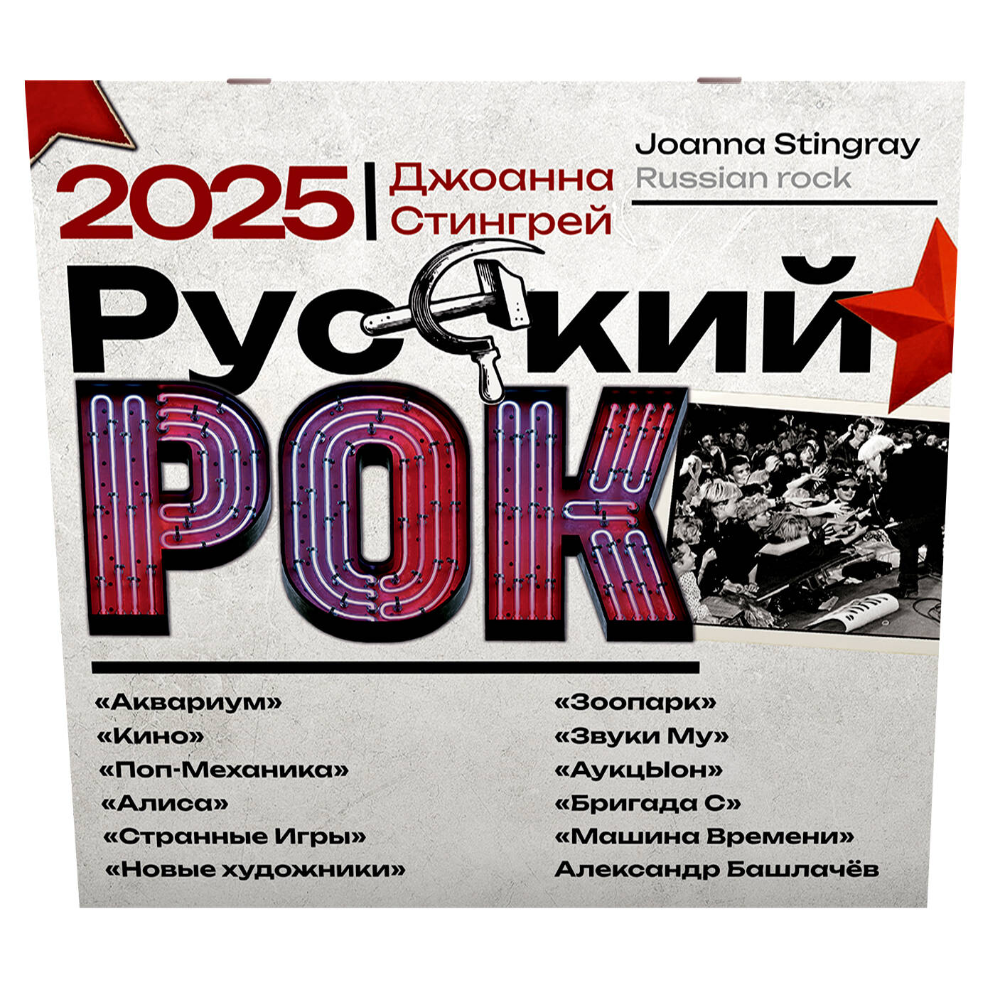 Фотографии музыкантов золотого периода русского рока из личного архива Джоанны Стингрей, популяризатора советской и постсоветской рок-культуры на Западе, певицы и продюсера. В календаре выделены памятные даты - дни рождения музыкантов, близких людей Джоанны.| Издательство | Издательство "АСТ" |