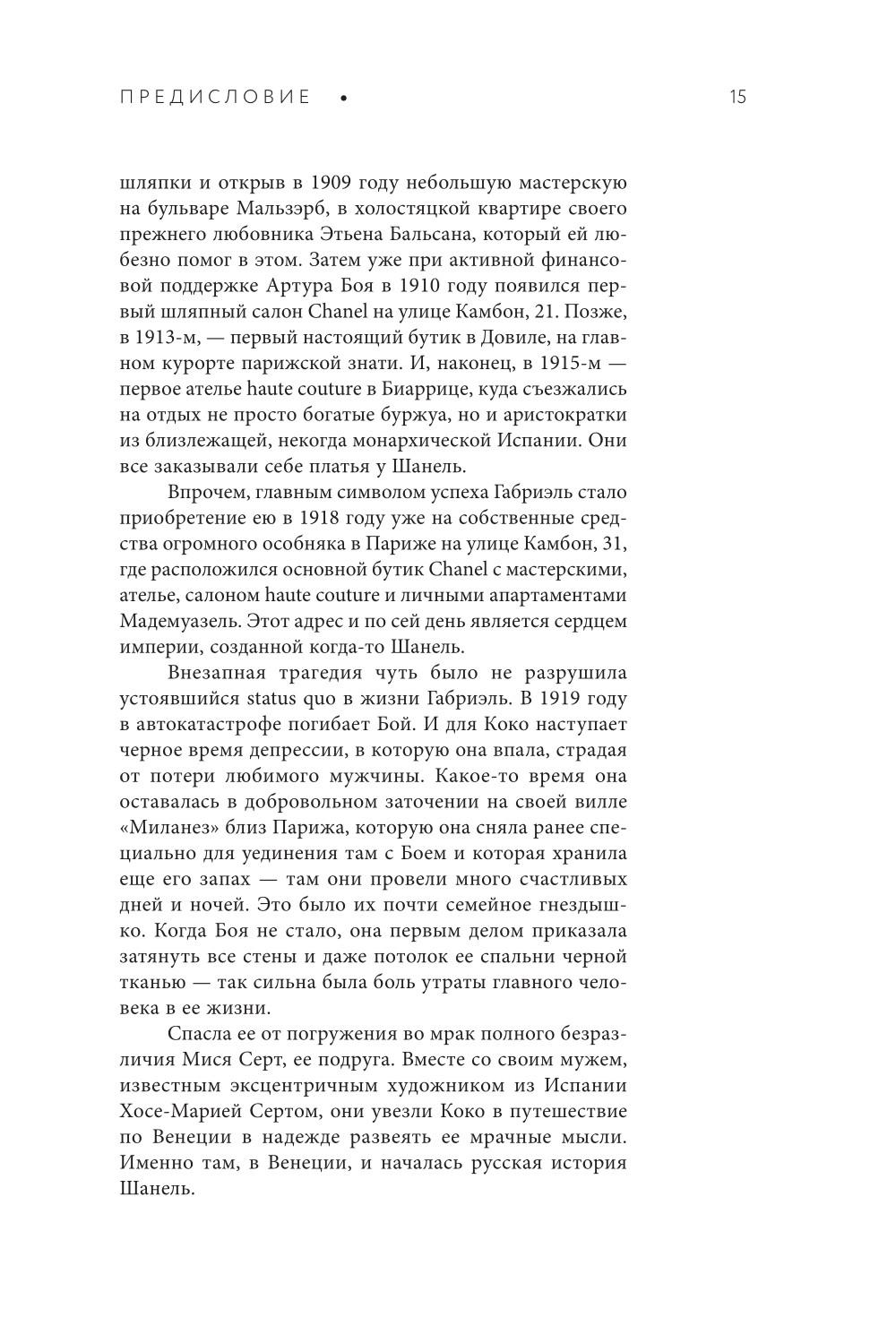 Эта книга раскрывает неизвестную историю одной из самых знаменитых француженок в мире. Она рассказывает о связях Габриэль Шанель с Россией и ее русском окружении. О русских друзьях, соратниках, коллегах, оказавших огромное влияние на творчество Шанель в разные годы и на ее судьбу в целом. Вместе с Еленой Гетьман вы узнаете, откуда тянется русский шлейф Шанель, чему она научилась у русских и чем им обязана. Как дружба с русским импресарио Сергеем Дягилевым, композитором Игорем Стравинским, танцовщиками Сергеем Лифарем и Ольгой Хохловой помогла соединить в её работах французскую элегантность с русскими традициями, породив тем самым новые модные веяния. А роман с Великим русским князем Романовым подарил миру самые знаковые изобретения бренда Chanel. Редкие фото, афоризмы Шанель о себе, России, стиле, людях и жизни помогут еще больше проникнуться философией великой Мадемуазель и ее трепетным отношением к русской культуре.