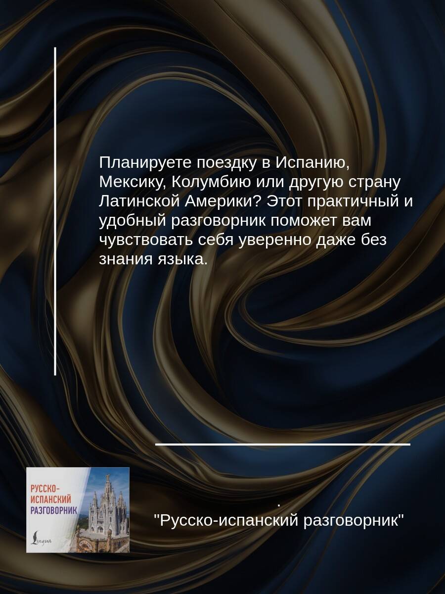 Русско-испанский разговорник станет для вас незаменимым помощником в путешествиях. В нем есть все самые необходимые темы: проживание в гостинице, поход в магазин и ресторан, поездки в транспорте и на автомобиле, проведение досуга, обращение к врачу, в полицию и т. д. Краткие испанско-русский и русско-испанский словари помогут вам расширить словарный запас и преодолеть языковой барьер. Приятного путешествия!| Издательство | Издательство "АСТ" |