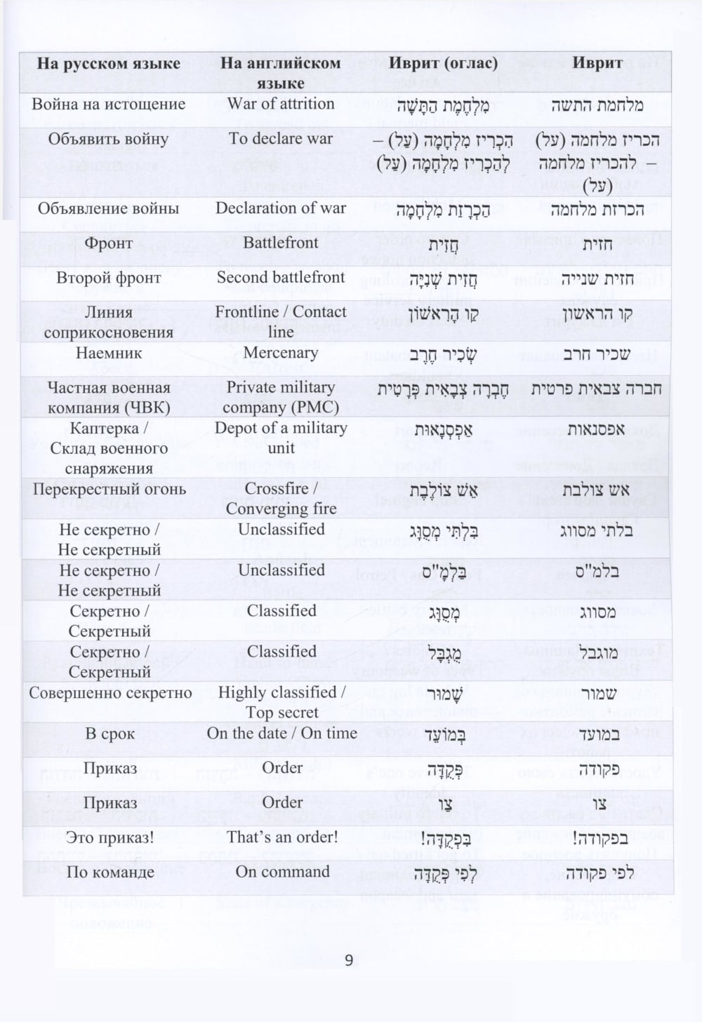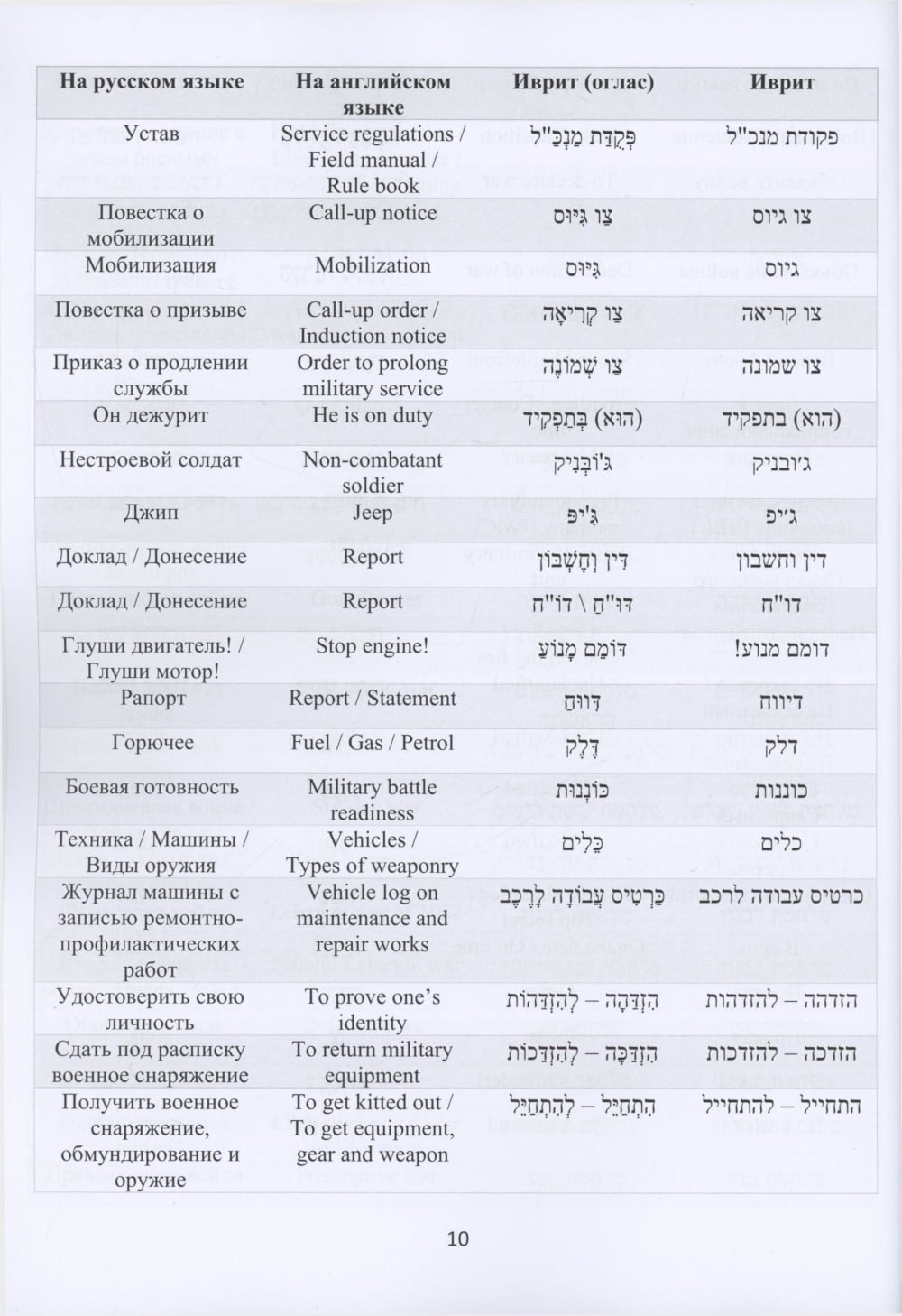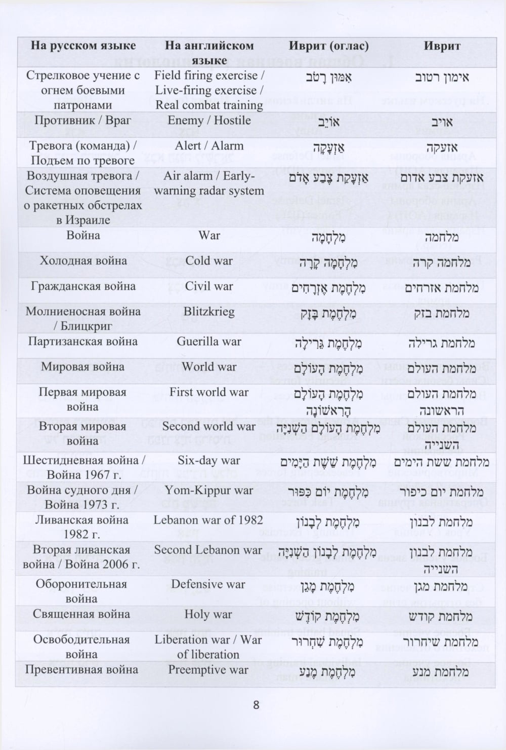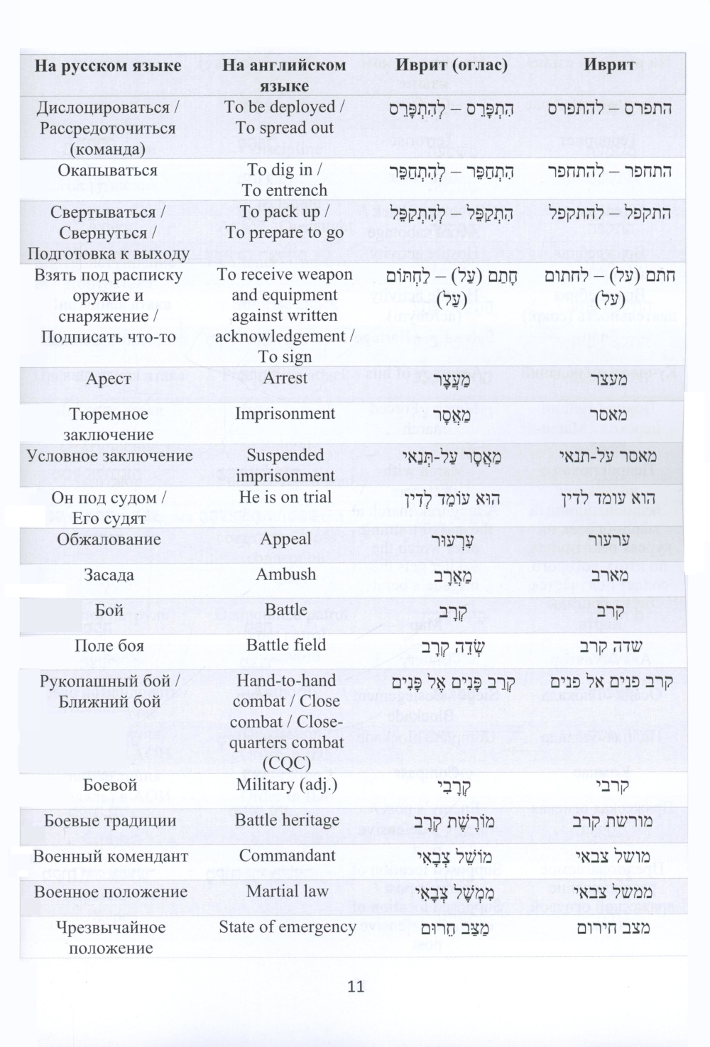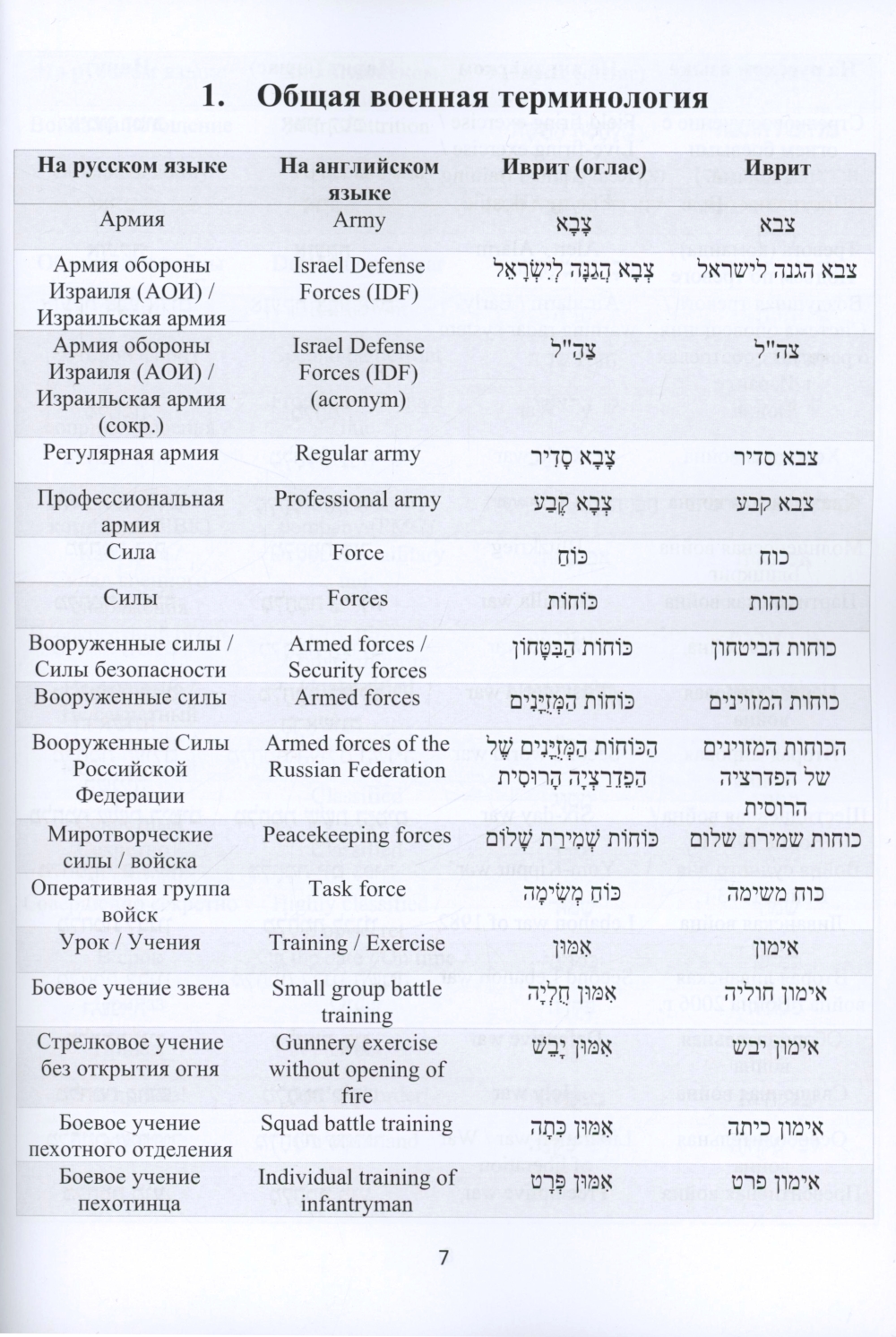 Русско-иврит-английский словарь военного перевода