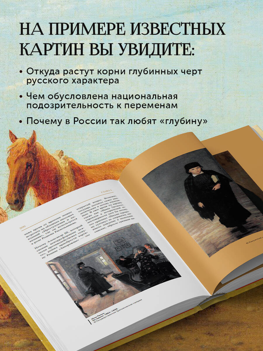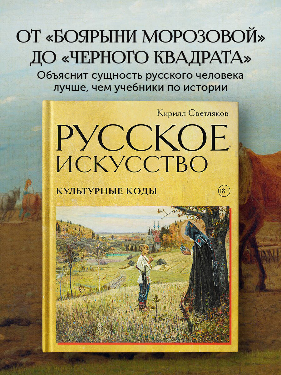 «Русское искусство. Культурные коды» - книга, которая помогает найти ключ к пониманию русского характера, чувств и мировосприятия через шедевры русского искусства. На примере шедевров Васнецова, Шишкина, Репина, Сурикова, Петрова-Водкина и других мастеров раскрываются важнейшие черты национального характера - сила, сострадание, глубокая внутренняя жизнь, любовь к земле и верность своей культуре. «Боярыня Морозова», «Явление Христа народу», «Не ждали», «Бурлаки на Волге» - эти и другие картины становятся поводом для честного разговора о том, почему русский человек ощущает мир именно так. Издание создано в подарочном формате на плотной мелованной бумаге, с высоким качеством печати и сдержанным, благородным золотым оформлением. Это не просто альбом, а ценное дополнение к библиотеке каждого, кто интересуется историей и культурой своей страны. Вместе с богатым иллюстративным рядом автор книги - Кирилл Светляков, известный искусствовед, куратор выставок, арт-критик - предлагает доступное, но глубокое прочтение ключевых образов русской живописи, помогает увидеть за формой - содержание, за сюжетом - идею, за красками - культурный код. Русское искусство - это неотъемлемая часть нашей национальной идентичности. И эта книга приглашает к спокойному, вдумчивому диалогу с прошлым, способному пробудить уважение, гордость и глубокую связь с Родиной.| Издательство | ООО "Издательство "Эксмо" |