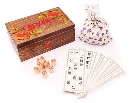 РУССКОЕ ЛОТО В ДЕРЕВЯННОМ РАСПИСНОМ ТОНИРОВАННОМ СУНДУЧКЕ (Арт. ИН-3552)