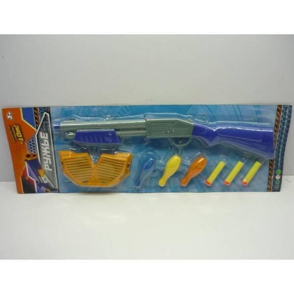 РУЖЬЕ "ИГРАЕМ ВМЕСТЕ" С МЯГКИМИ ПУЛЯМИ И КЕГЛЯМИ НА КАРТ. (РУСС. УП.) в кор.2*36шт