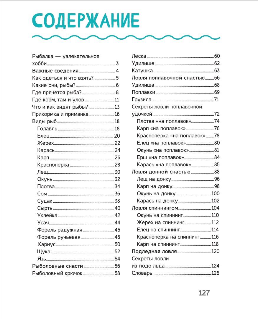Эта книга - отличный повод увлечь вашего ребенка рыбалкой. Ее можно назвать практическим руководством для начинающего рыболова, ведь здесь описаны самые распространенные в наших водоемах рыбы, основные снасти, способы и приемы рыбной ловли. Как подготовиться к рыбалке и что взять с собой? Какую рыбу ловить лучше на поплавок, а какую на донку? Как приготовить прикормку своими руками? Где больше водится рыбы и как это определить? В какое время года лучше ловить ту или иную рыбу? Что нужно сделать, чтобы не вспугнуть рыбу? Как одеться на зимнюю рыбалку? Какие правила безопасности необходимо соблюдать? На все эти вопросы юный рыболов найдет ответы в этой книге. А лаконичный текст, понятные пошаговые инструкции, детальные рисунки и схемы, советы и подсказки от профессионалов помогут вызвать у ребенка интерес к рыбалке и привить любовь к этому увлекательному занятию. Для младшего школьного возраста.