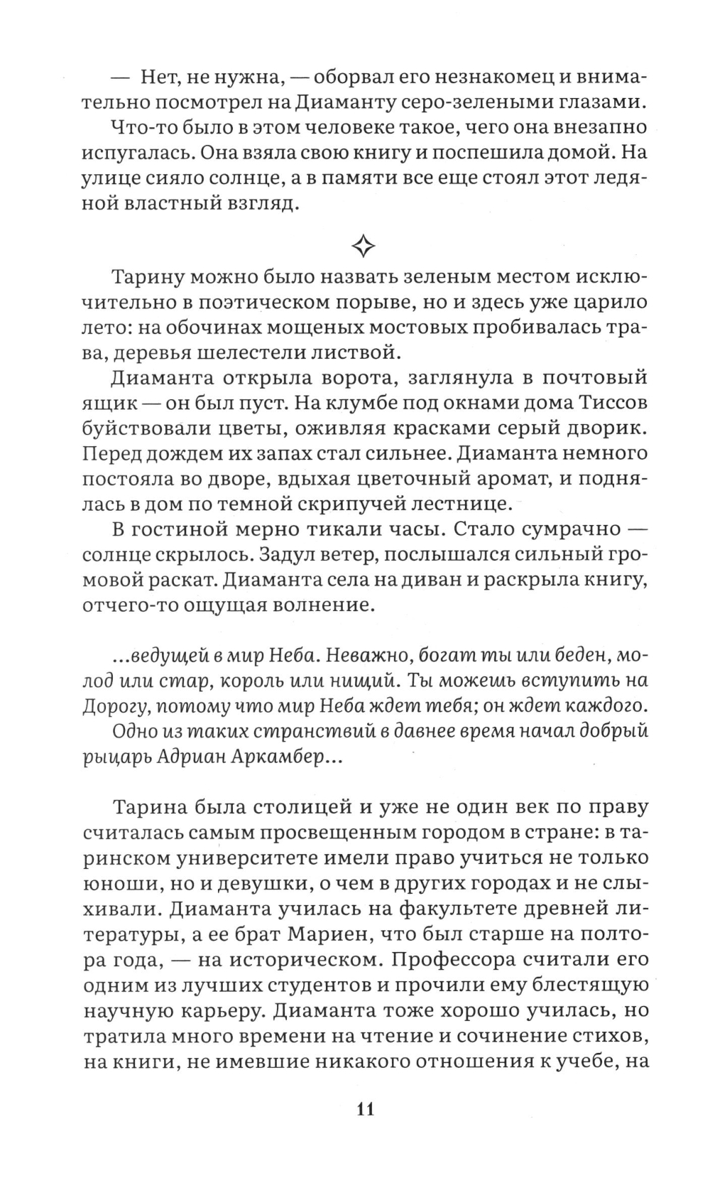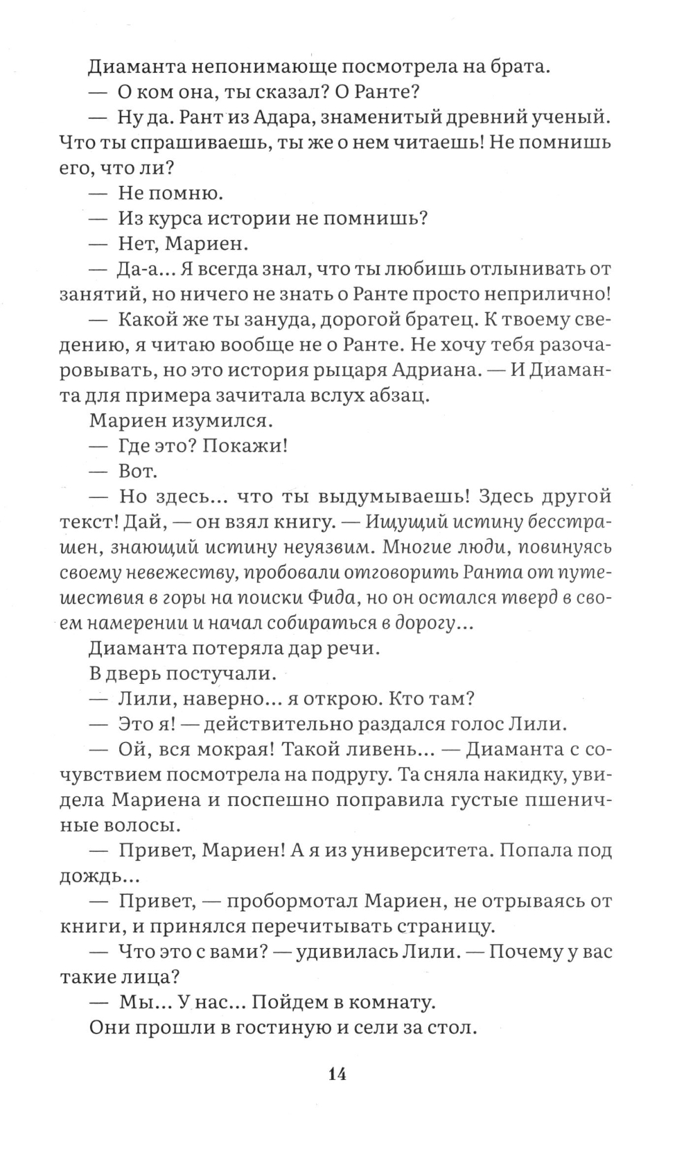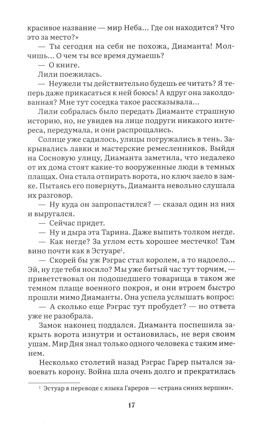 Это история о том, как однажды пересеклись дороги бедного бродячего актера Эдвина и могущественного принца Рэграса, наследника великой династии Гареров. Корона мира Дня принадлежит Рэграсу по праву, но из-за лжи и предательства ее приходится завоевывать. При этом главную угрозу своей власти Рэграс видит не в политических и военных противниках, а в одной редкой старинной книге. Именно такую книгу студентка Диаманта случайно купила у букиниста, чтобы не скучать на летних каникулах, а дома с изумлением обнаружила, что в ней меняется текст и каждому читателю она предлагает свою особенную историю.| Издательство | Проспект |