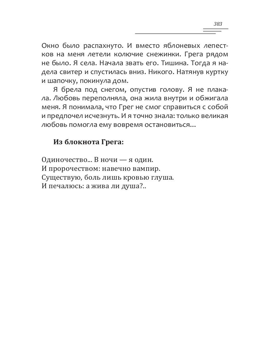 Отдыхая у бабушки, Лада встречает загадочного Грега - он красив, богат, немного высокомерен и... совсем не похож на деревенского жителя. И он так и не попросил ее номер телефона. Лада уже готова выбросить его из головы, но снова встречает странного парня на готической вечеринке, и Грег делает вид, что они незнакомы. К чему эти игры? И отчего ей кажется, что все не просто так? Но у девушки нет сил противиться сильному всепоглощающему чувству. А Грег, хоть и признается ей в любви, до конца не открывается. И Лада понимает, что он совсем не тот, за кого себя выдает. Все раскрывается, когда в ее жизни появляется еще один незнакомец - Дино, охотник на вампиров...