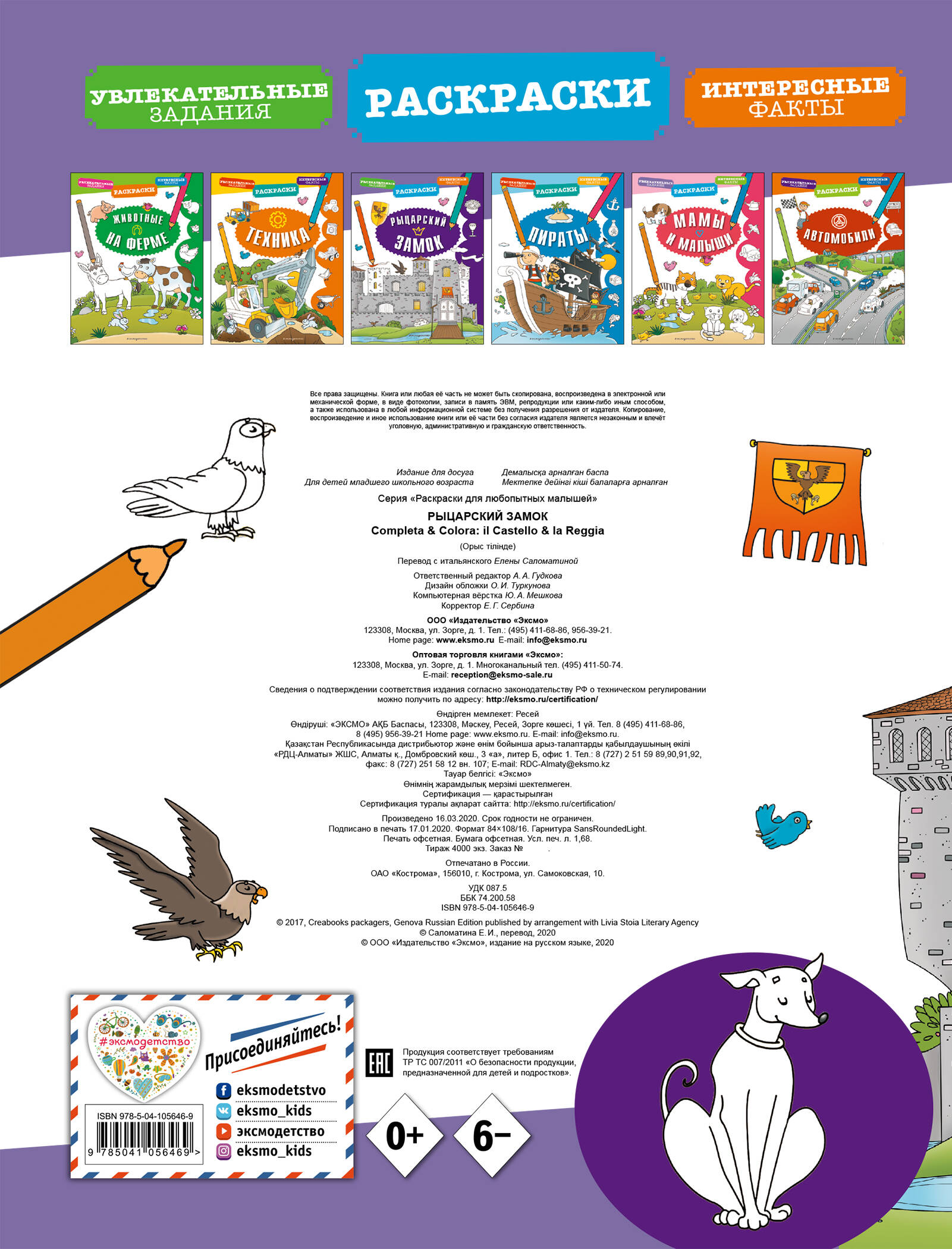 Путешествуй по интересным местам и эпохам и узнавай интересные факты с каждой новой страницей в этой увлекательной серии книги. Решай головоломки, узнавай новое и раскрашивай с удовольствием. Достаточно только открыть книгу! Тебя ждёт увлекательное знакомство с замком настоящего рыцаря! Вперёд!| Издательство | ООО "Издательство "Эксмо" |