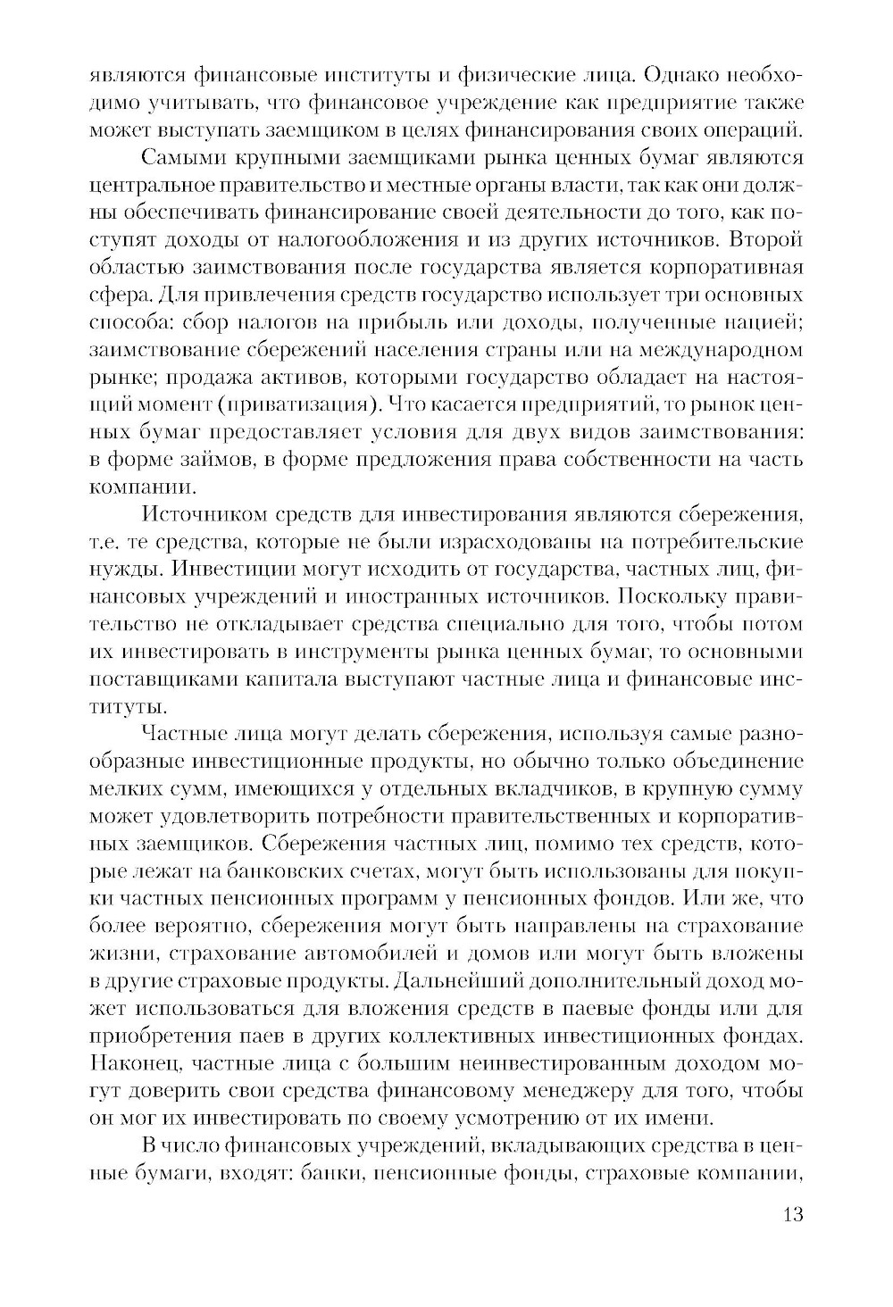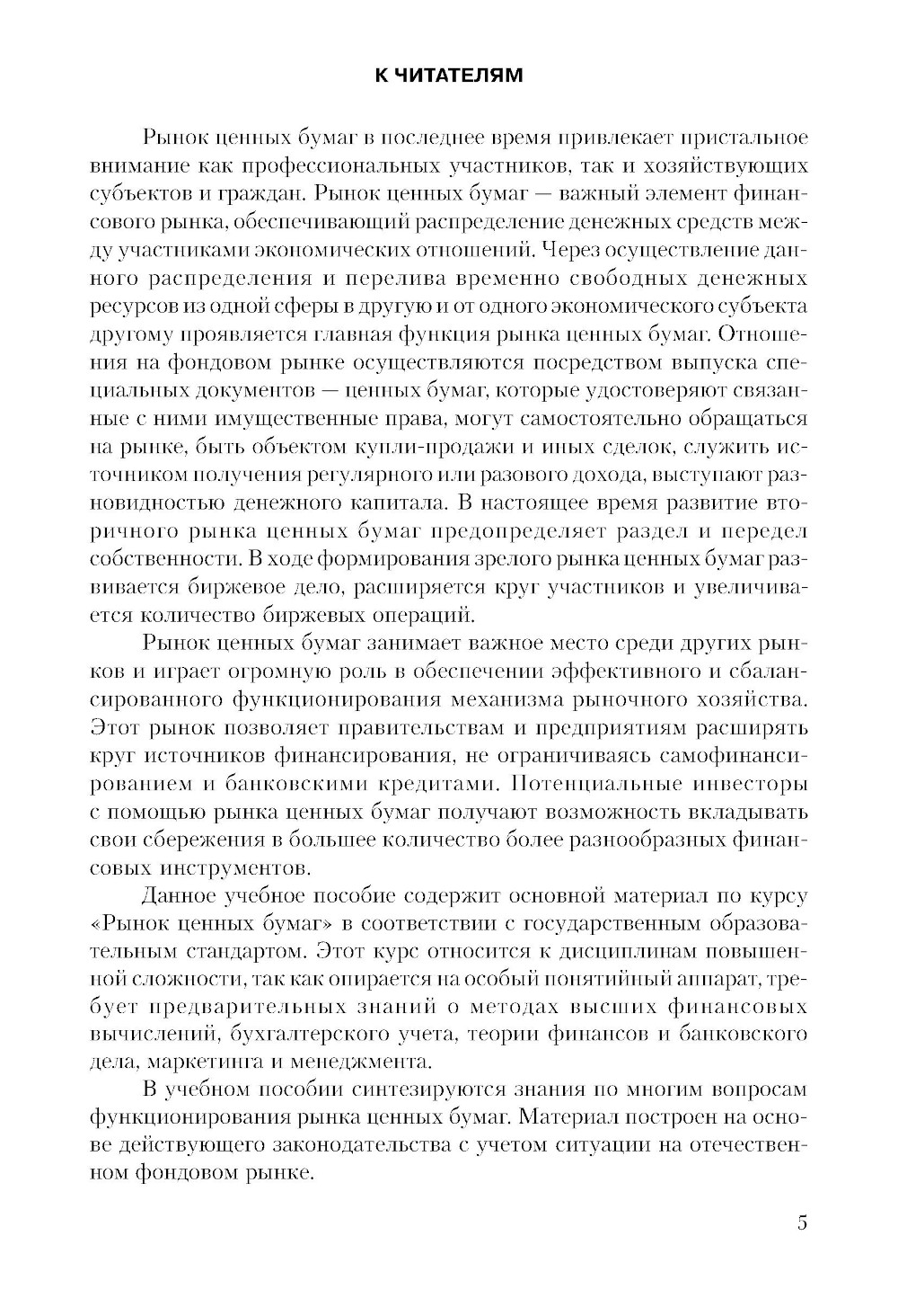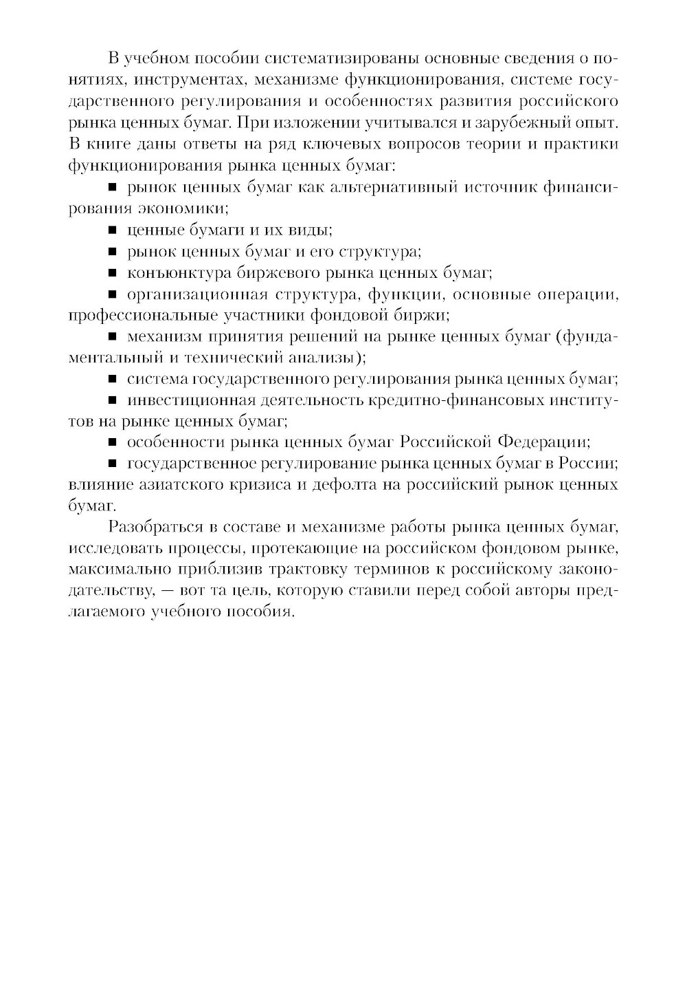 Рассматриваются теоретические аспекты функционирования рынка ценных бумаг с учетом зарубежного опыта, а также практики работы отечественного фондового рынка. Изучаются виды ценных бумаг, характеристики участников и структура рынка ценных бумаг, стратегии формирования инвестиционных портфелей и управления ими, инвестиционные фонды. Приведены многочисленные практические примеры, а к каждой главе - контрольные вопросы. Для студентов, аспирантов, преподавателей экономических факультетов и вузов, участников рынка ценных бумаг, а также аудиторов, финансовых менеджеров, лиц, самостоятельно изучающих современные проблемы функционирования фондового рынка.| Издательство | КноРус |