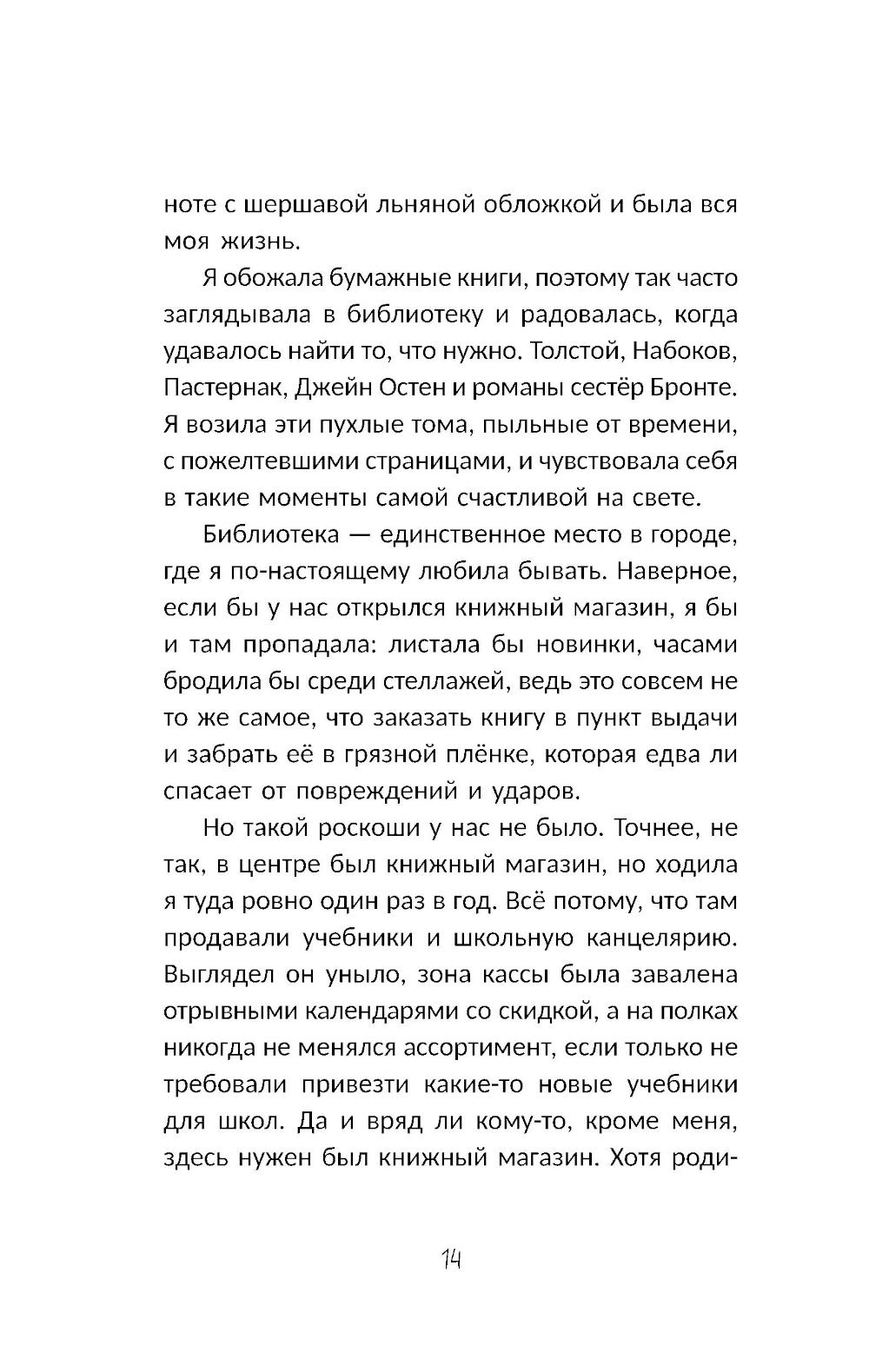 Открыть книжный магазин в городе, где никто не читает? Безумие! Но что, если это безумие столкнёт двоих вместе? И среди пыльных полок они смогут создать свой уютный книжный мир. Уля - начитанная и умная девушка, но для окружающих она невидимка. Всё меняется, когда в город возвращается её приятель Ваня, чтобы исполнить мечту - открыть книжный магазин. Вместе они красят стены, расставляют книги, слушают музыку в дождливые дни и говорят обо всём на свете. Только любое волшебство имеет срок. Скоро магазин откроет свои двери, и Ване больше не будет нужна помощь Ули. Как и она сама. Закончится ли эта история с открытием магазина? Или их всё же ждёт счастливый финал?| Издательство | Феникс |