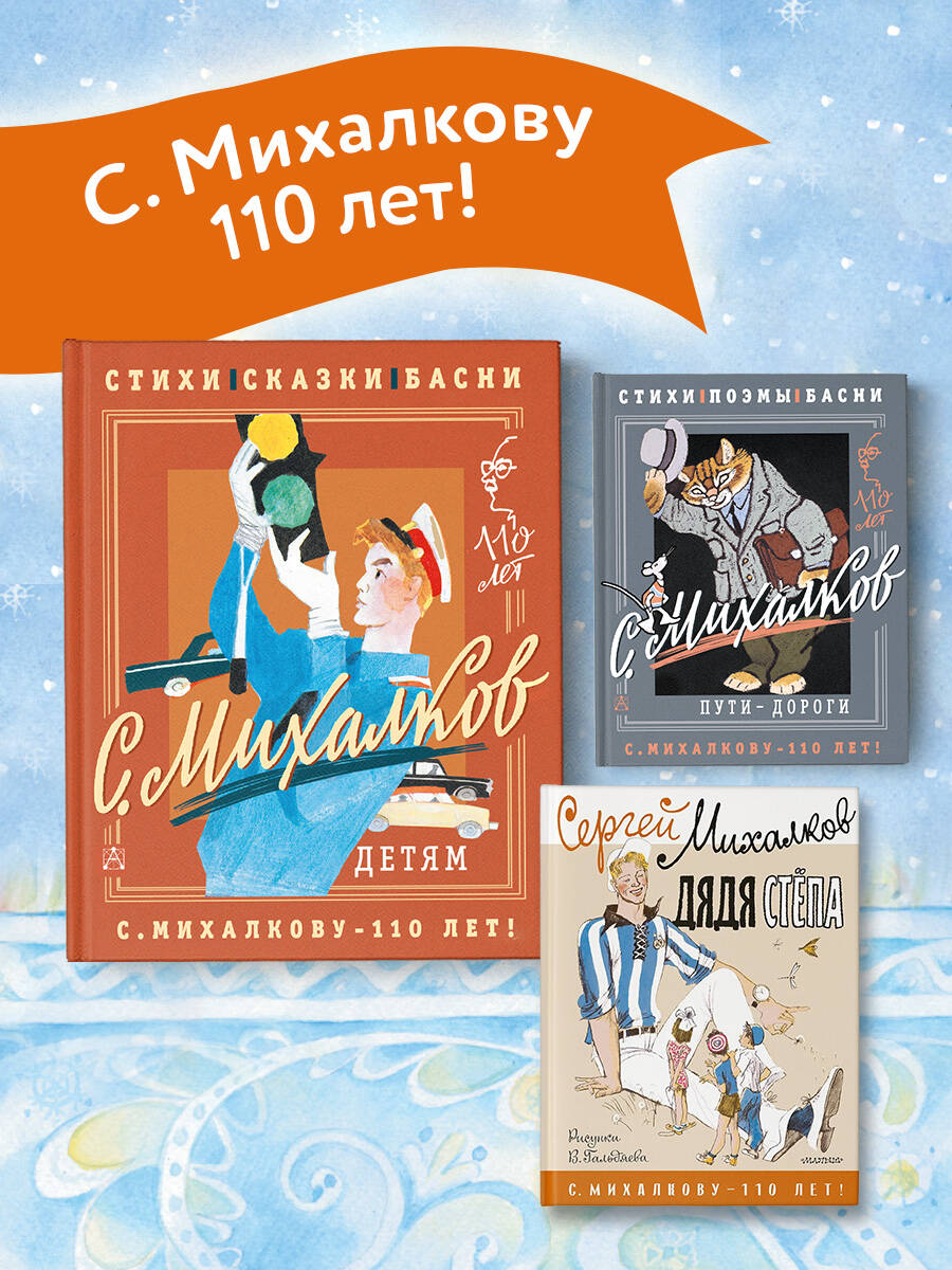 В книгу "Детям" вошли самые знаменитые произведения Сергея Михалкова для малышей и детей постарше: "А что у вас?", "Песенка друзей", "Три поросёнка", "Зайка-Зазнайка", "Дядя Стёпа", "Хочу бодаться!" и другие. Это один из самых полных сборников стихов, сказок, басен и загадок писателя-классика. В начале сборника читателей ждёт автобиография автора, которая расскажет о пути становления великого писателя и деятеля российской культуры. В книге даны цветные иллюстрации к избранных произведениям классических и современных художников. Книга издана к 110-летнему юбилею Сергея Михалкова - поэта, писателя, драматурга, автора Гимна России. В серии "С. Михалкову - 110 лет" выходит продолжение этой книги, но уже для взрослых - "Пути-дороги", куда вошли басни, лирические стихотворения, стихи о войне и Гимн России. Для широкого круга читателей.