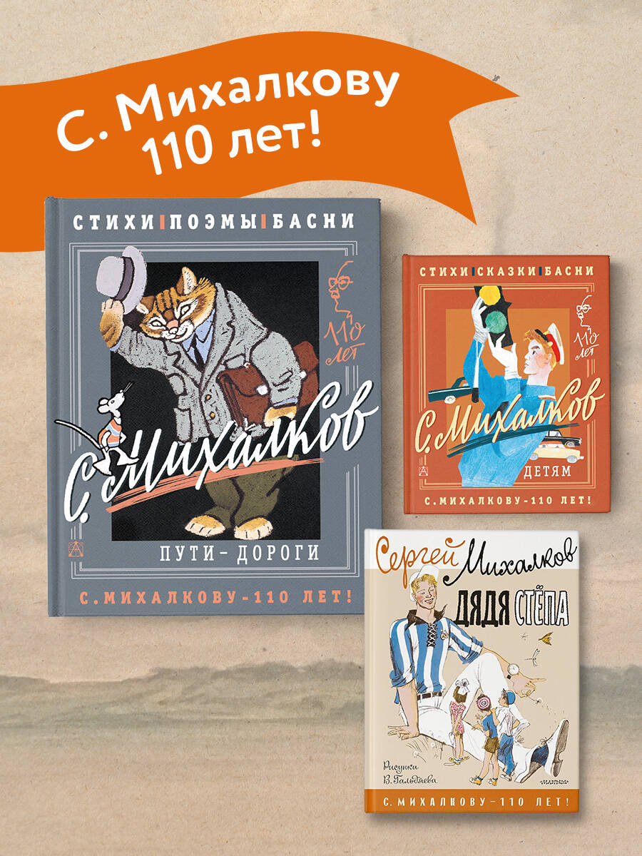 В книгу «Пути-дороги» вошли самые знаменитые произведения Сергея Михалкова для взрослых читателей - басни, лирические стихотворения, стихи о войне и Гимн Российской Федерации. В сборнике даны предисловия к разделам, откуда можно узнать о создании произведений и иллюстраций к ним. Также дана статья самого автора о написании современного Гимна России. В книгу вошли цветные иллюстрации народного художника РСФСР Евгения Рачёва к избранным произведениям. За иллюстрации к басням художник стал Лауреатом Государственной премии РСФСР, а лирику и военные стихотворения прекрасно дополняют его пейзажи и фронтовые зарисовки. Книга издана к 110-летнему юбилею Сергея Михалкова - поэта, писателя, драматурга, автора Гимна России. В серии «С. Михалкову - 110 лет» выходит продолжение этой книги, но уже для маленьких читателей - «Детям», куда вошли стихи, сказки, басни и загадки знаменитого писателя. Для широкого круга читателей.| Издательство | ИЗДАТЕЛЬСТВО "АСТ" |