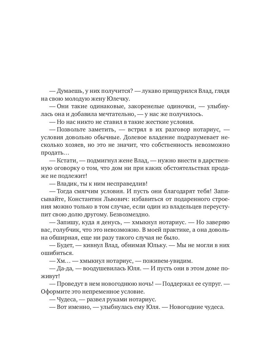 Подарки судьбы бывают разные. Ольге она в качестве презента подкинула домик в деревне. Вернее, половину дома. Другая часть досталась хаму «неандертальцу»! А по условиям договора дарения оба владельца должны были провести ночь в доме. Они и провели, в разных комнатах, разумеется. С белой линией разметки и дележкой внезапно свалившегося на них имущества. Игорю достался стол, Ольге - холодильник. Вначале важным казался вопрос: «Как же жить без холодильника?!» Затем пришло понимание: «Невозможно жить без этой вредины». Но расстаться среди стылой деревенской зимы пришлось, чтобы встретиться знойным тропическим летом... И снова заняться дележкой комнат. На этот раз окончательно!| Издательство | Т8 RUGRAM |