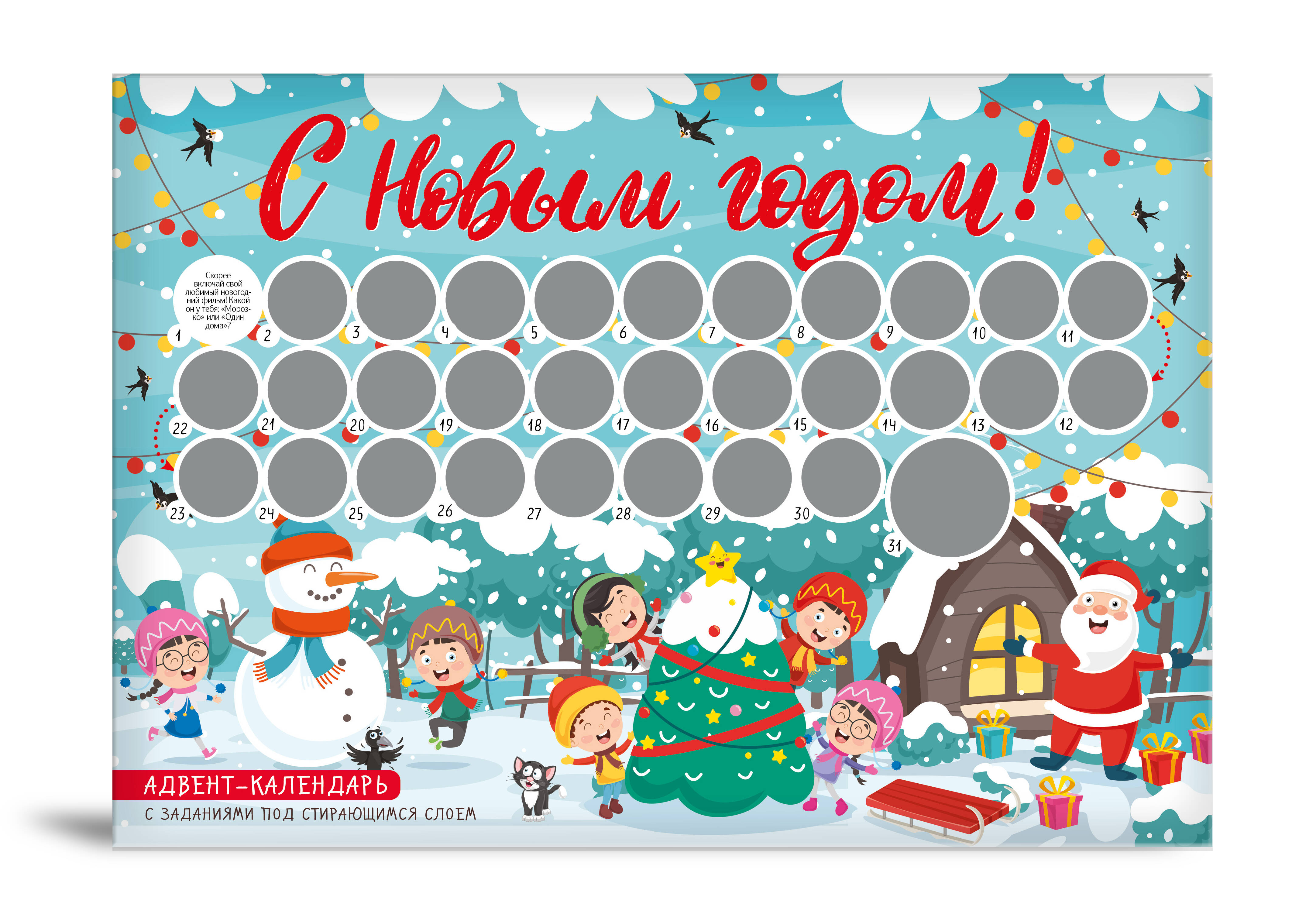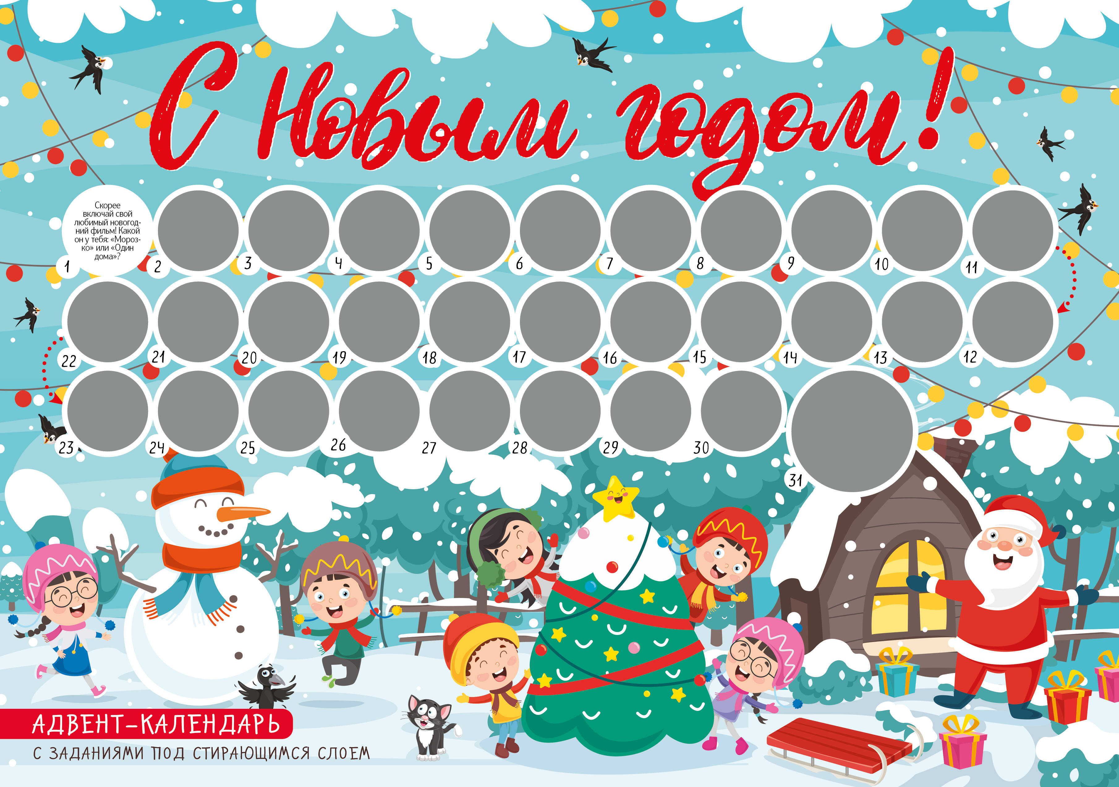С Новым годом! Адвент-календарь с заданиями под стирающимся слоем (294х418 мм) (елка)