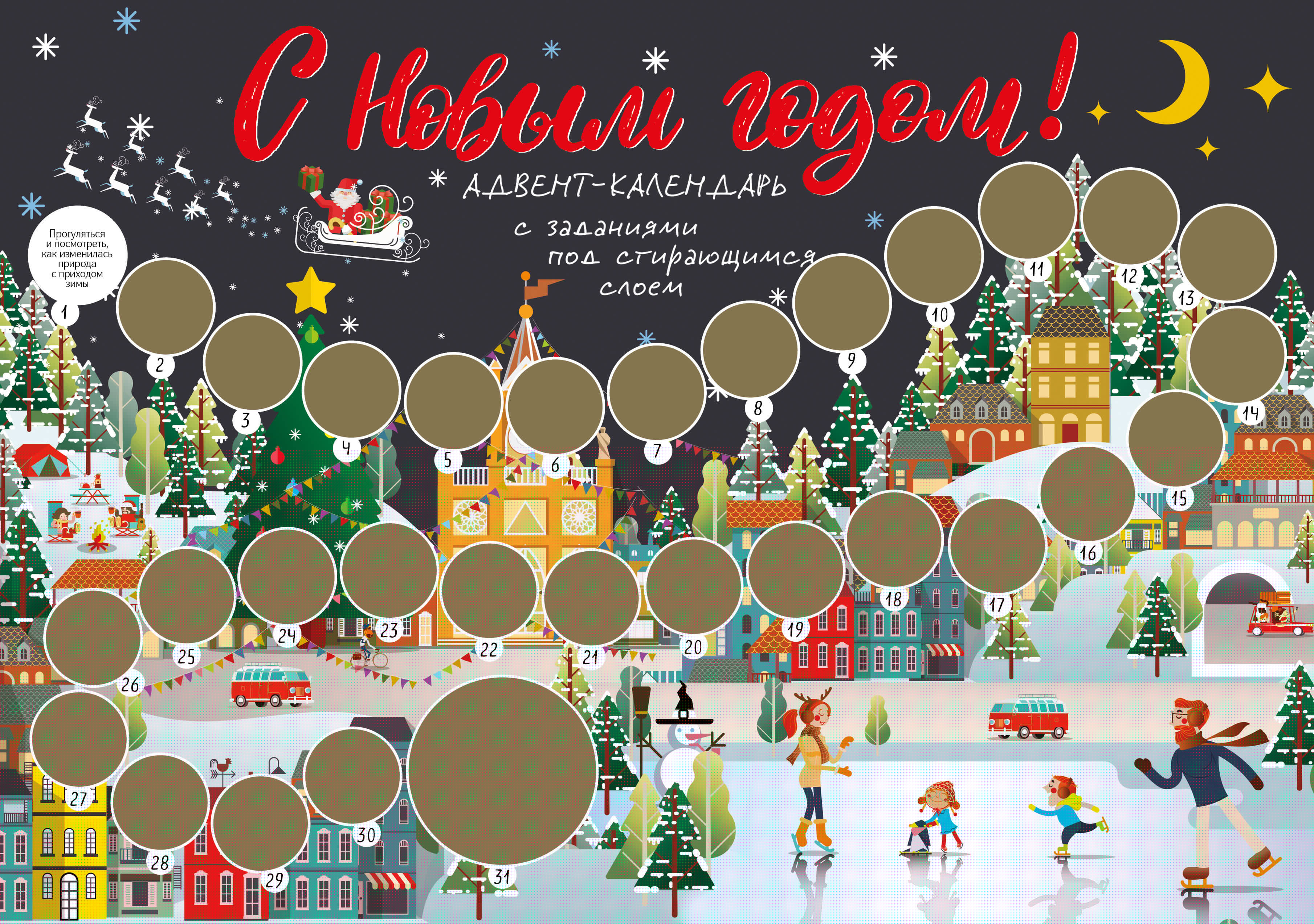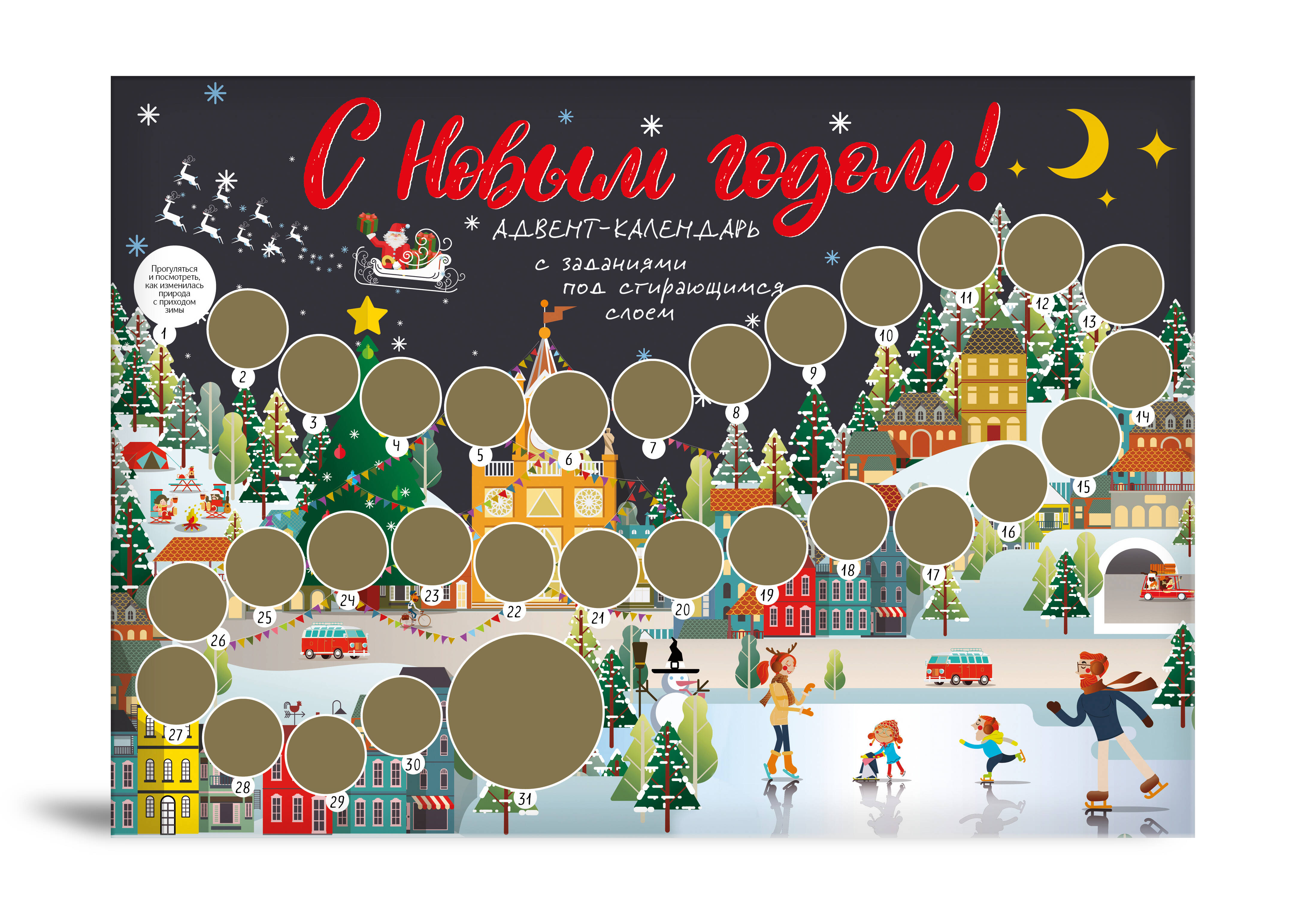 Аннотация: С Новым годом! Адвент-календарь с заданиями под стирающимся слоем (294х418 мм) (каток)
