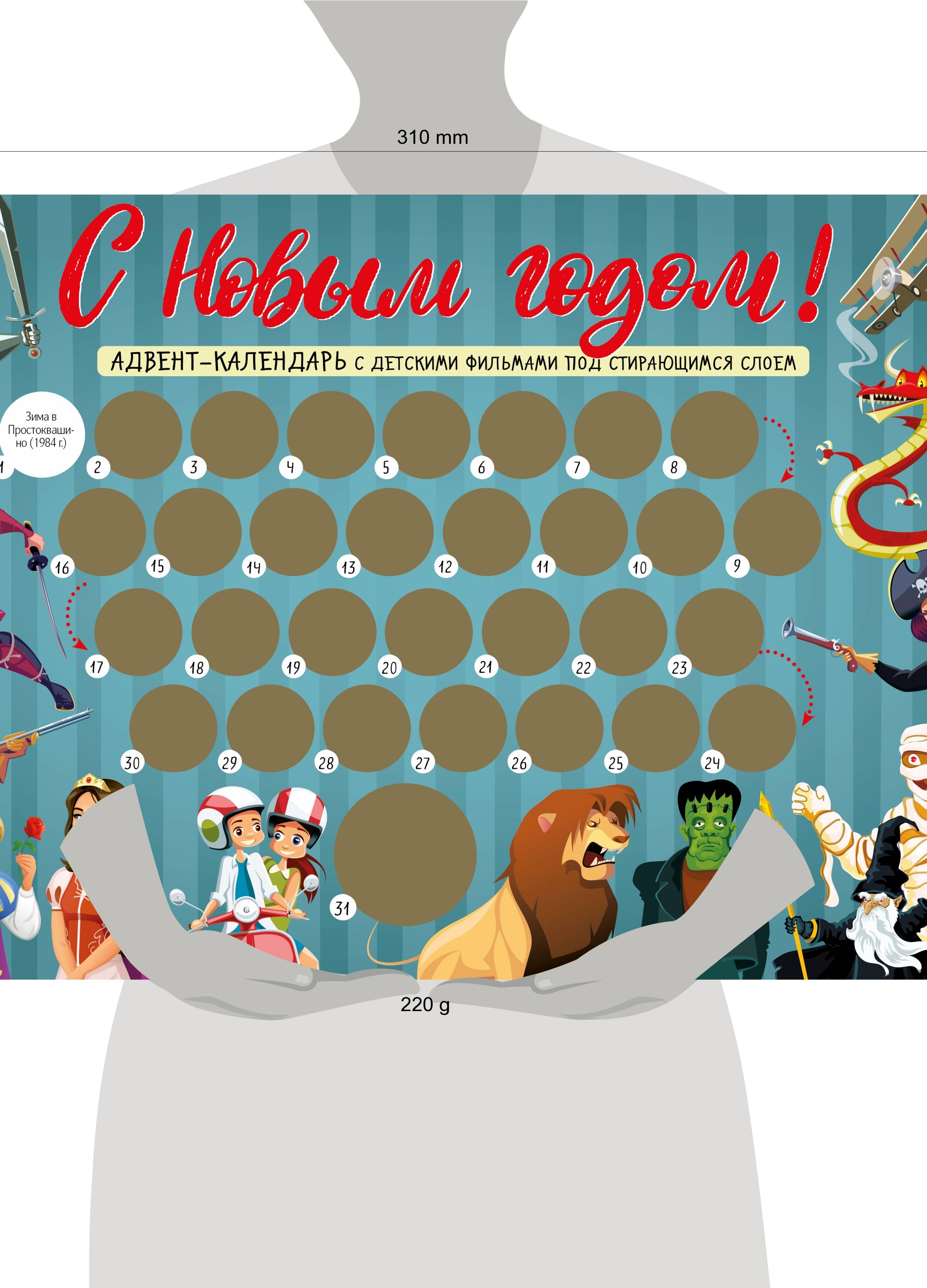 С Новым годом! Детский адвент-календарь с мультфильмами под стирающимся слоем (294х418 мм)