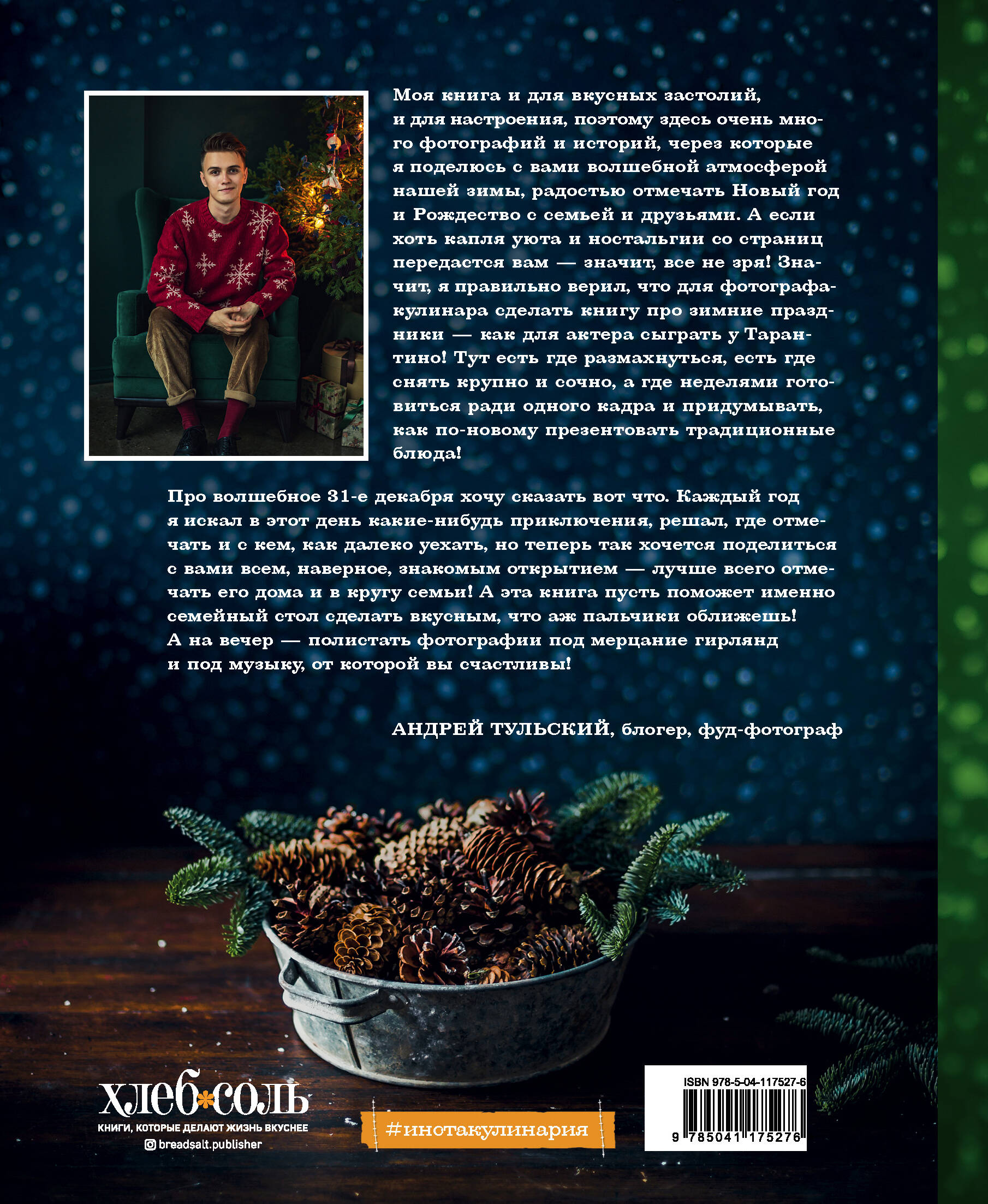 Близится пора самого любимого семейного праздника, когда мы нарядим елку, зажжем свечи, накроем стол и затаимся в ожидании... Нового года. Волшебную атмосферу новогодней ночи скрасят ароматы свежеиспеченного картофельного пирога с рыбой, пряного цыпленка табака и имбирного печенья. Остается лишь наполнить бокалы шампанским и загадать желания. А книга Андрея Тульского поможет вам воссоздать невероятные рецепты и сделать праздник незабываемым! В сокращенном втором издании исключена последняя глава "Сладкие подарки".| Издательство | ООО "Издательство "Эксмо" |