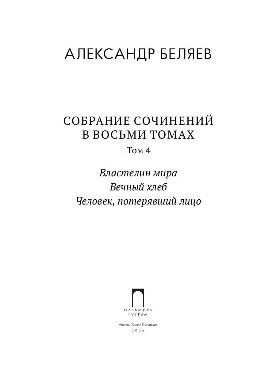 Аннотация: С/с. В 8 т. Т. 4: Властелин мира; Вечный хлеб; Человек, потерявший лицо