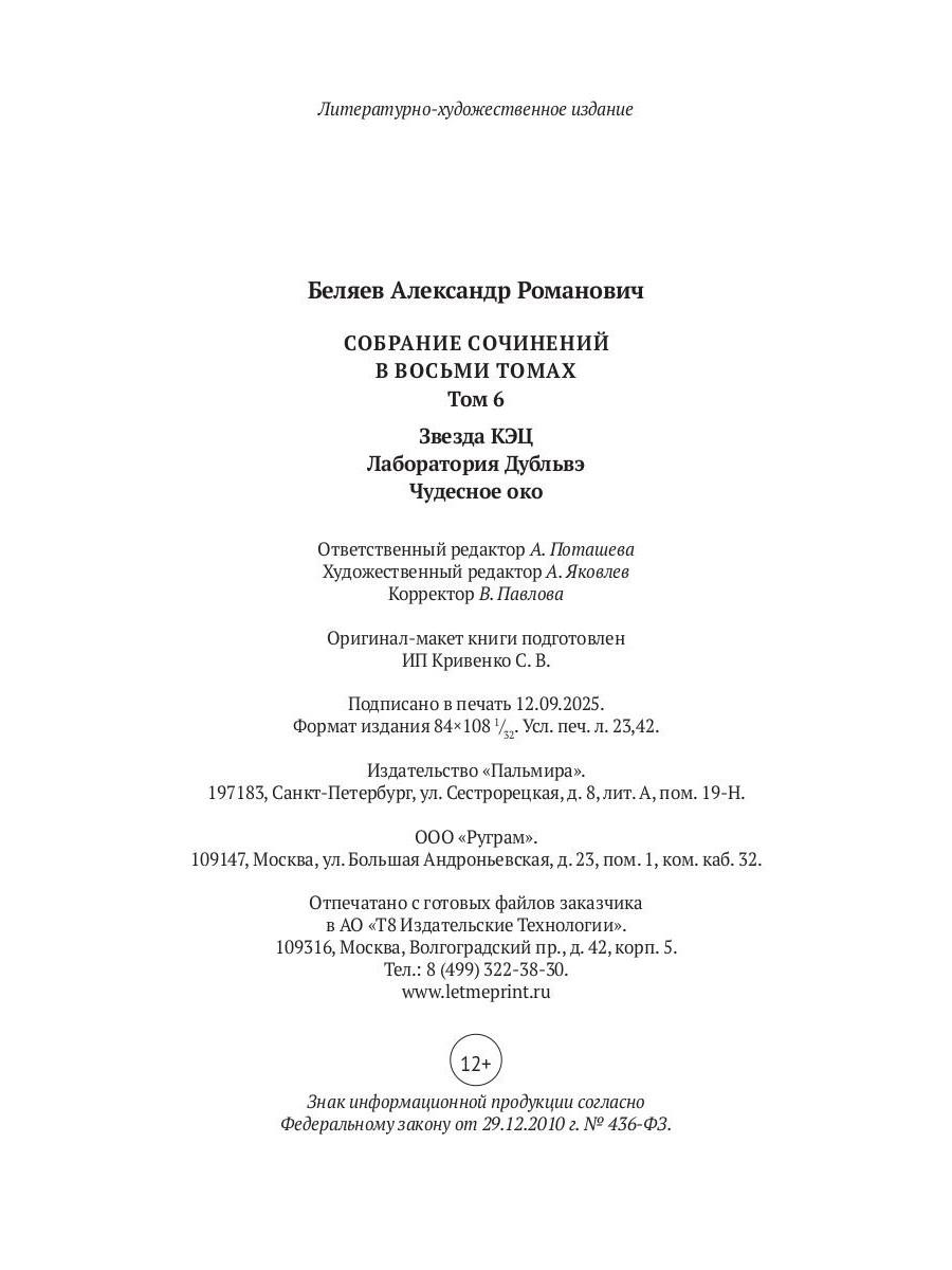 Аннотация: С/с. В 8 т. Т. 6: Звезда КЭЦ. Лаборатория Дубльвэ. Чудесное око