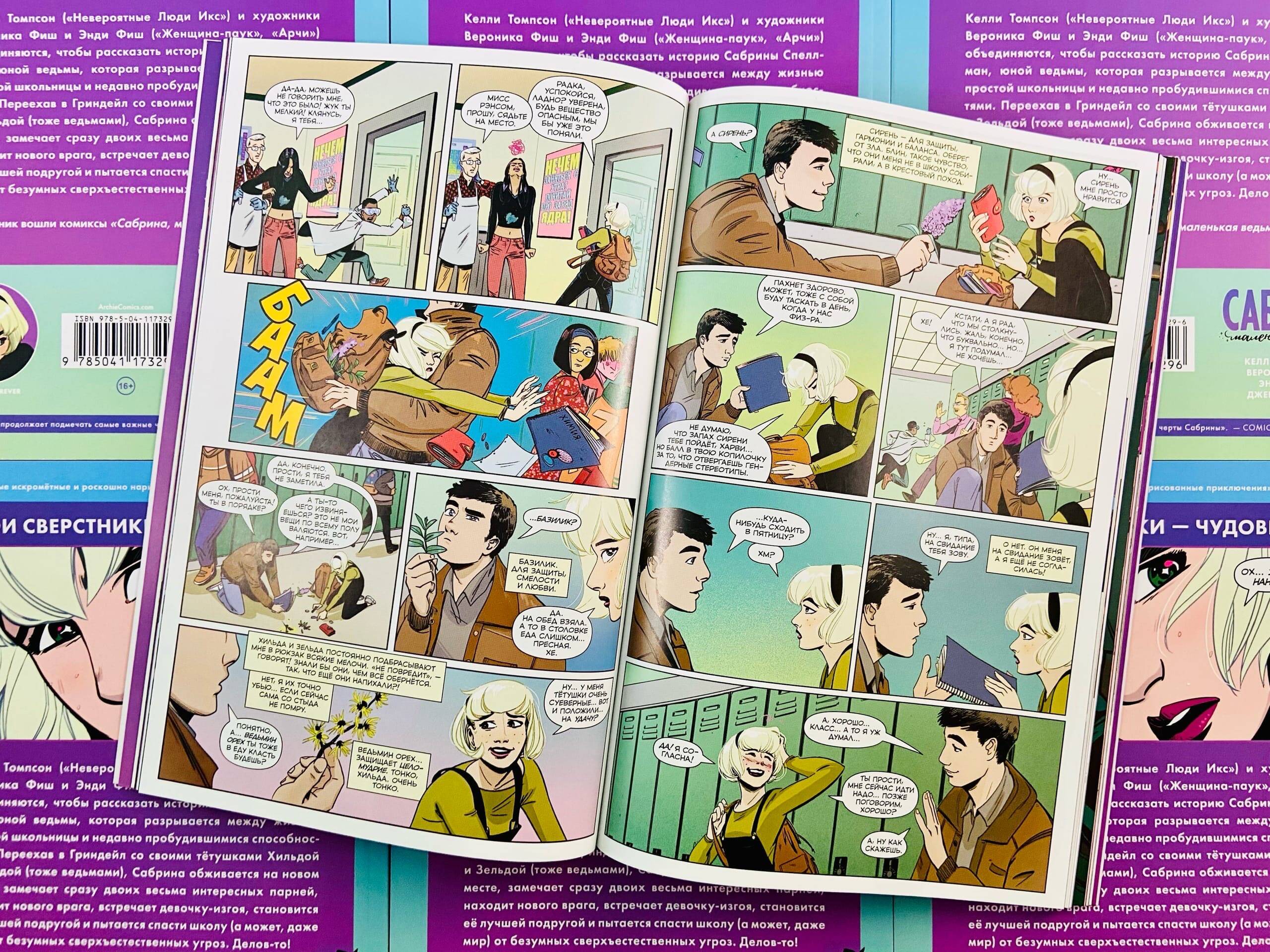 Мои сверстники - чудовища! Теперь эта фраза заиграет новыми красками! Келли Томпсон ("Невероятные Люди Икс") и художники Вероника Фиш и Энди Фиш ("Женщина-паук", "Арчи") объединяются, чтобы рассказать историю Сабрины Спеллман, юной ведьмы, которая разрывается между жизнью простой школьницы и недавно пробудившимися способностями. Переехав в Гриндейл со своими тётушками Хильдой и Зельдой (тоже ведьмами), Сабрина обживается на новом месте, замечает сразу двоих весьма интересных парней, находит нового врага, встречает девочку-изгоя, становится её лучшей подругой и пытается спасти школу (а может даже мир) от безумных сверхъестественных угроз. Делов-то! В сборник вошли комиксы "Сабрина, маленькая ведьма #1-5. "Обновлённые, искромётные и роскошно нарисованные приключения". The AV Club "Томпсон продолжает подмечать самые важные черты Сабрины". Comicbook.com| Издательство | ООО "Издательство "Эксмо" |
