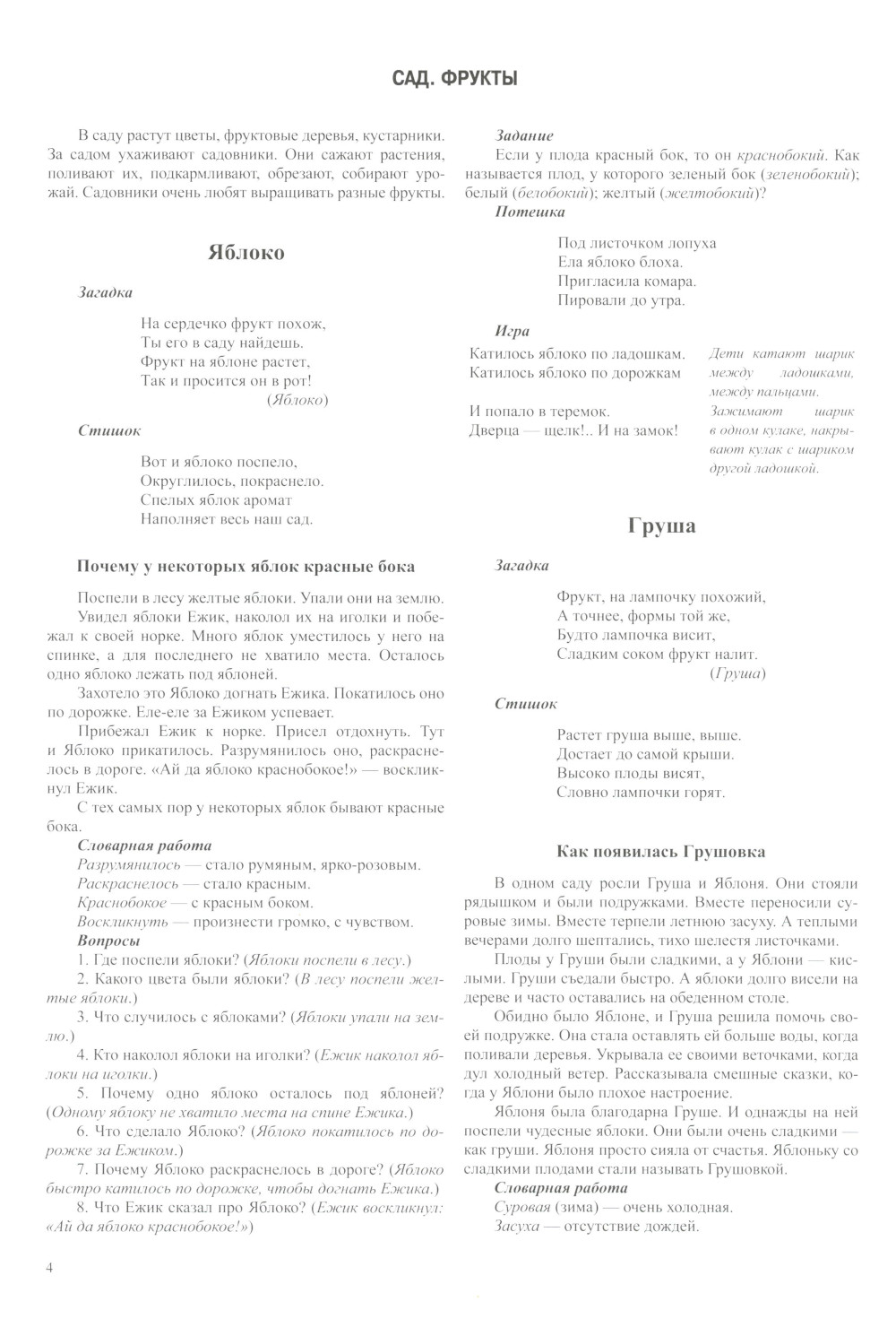 Материал, представленный в пособии, позволит обогатить и расширить словарный запас детей. Научит пользоваться существительными, прилагательными, глаголами, наречиями. В книге много авторских сказок, загадок, стихотворений, чистоговорок, занимательных заданий, потешек, игр по лексической теме «Сад. Фрукты». На вклейке даны цветные предметные картинки, а также картинки для раскрашивания (обводки, штриховки). Пособие окажет существенную помощь воспитателям и логопедам, а также может быть полезно гувернерам и родителям в домашних занятиях с детьми.| Издательство | Детство-Пресс |