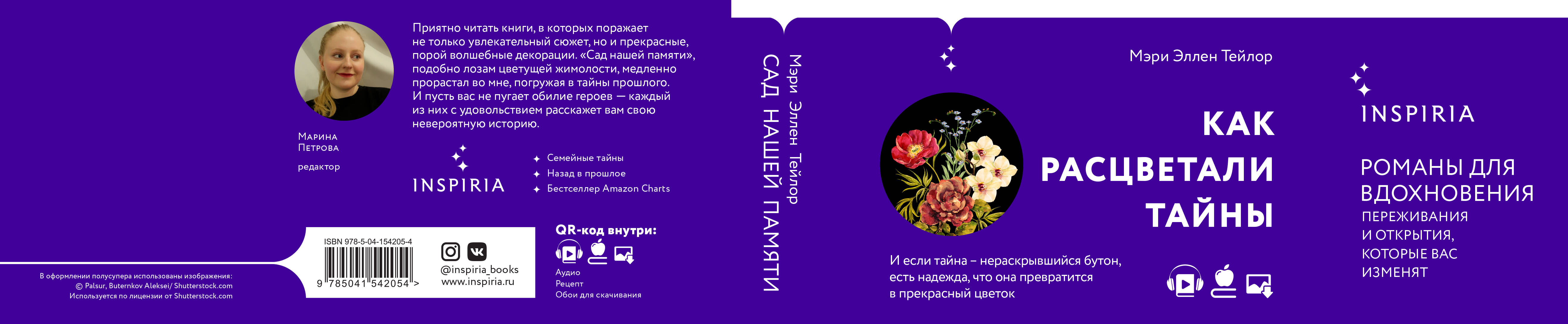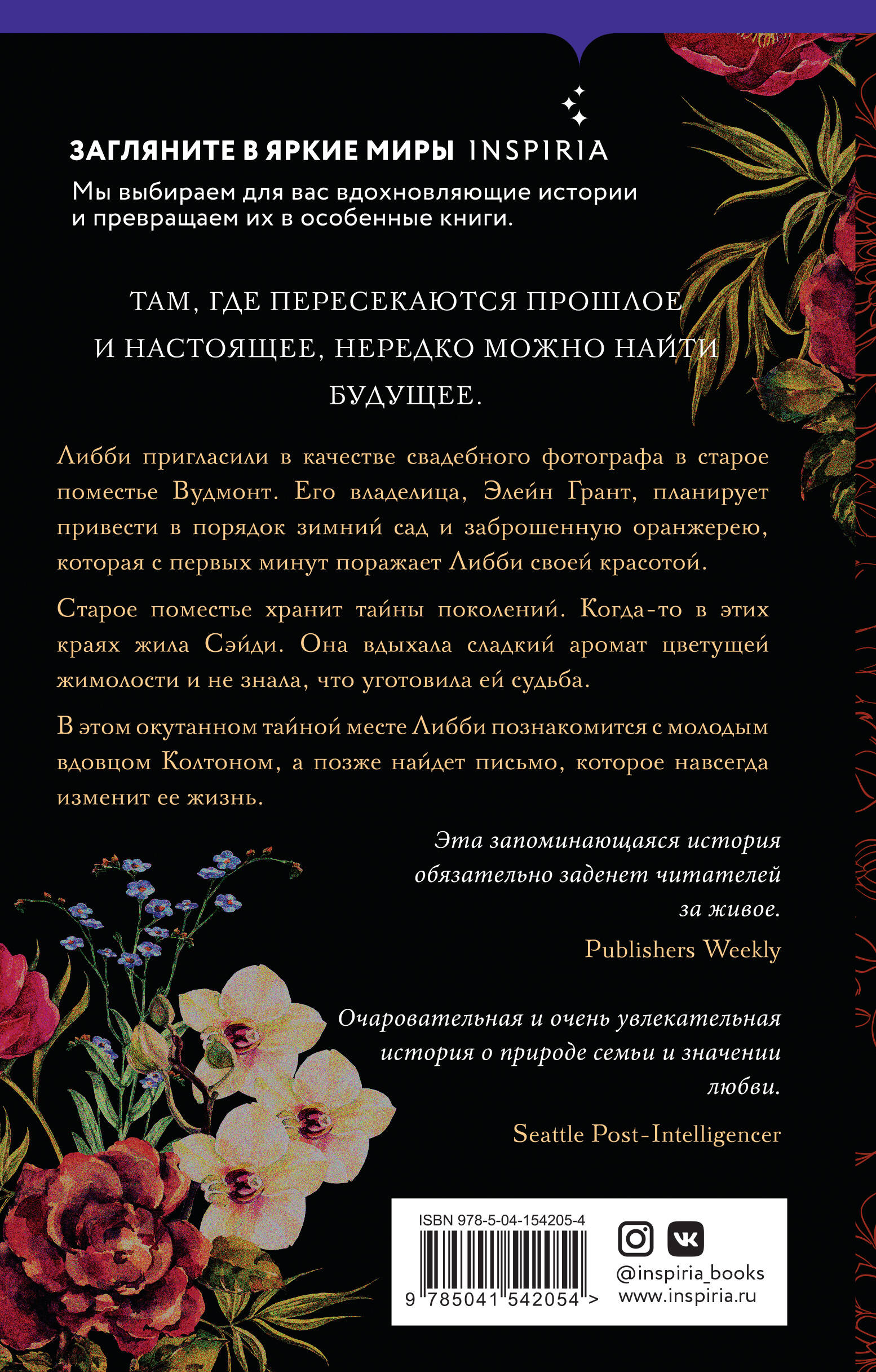 Герои американской писательницы Мэри Эллен Тейлор, как и реальные люди, пытаются найти свое место в мире, исследуя темы семьи, дома, любви и своего происхождения. Ее истории неизбежно переплетаются с удивительными событиями мест, в которых они происходят, а тайны, лежащие в их основе, охватывают прошлое и настоящее. Мэри Эллен Тейлор входит в списки лучших авторов по версиям New York Times и USA Today. «Сад нашей памяти» - абсолютный бестселлер Amazon Charts. Для любителей увлекательных историй, действие которых происходит в нескольких временных пластах. Мэри Эллен Тейлор рассказывает историю о глубокой утрате, горькой правде и заросшей оранжерее, полной старых секретов. Там, где пересекаются прошлое и настоящее, нередко можно найти будущее. Либби пригласили в качестве свадебного фотографа в старое поместье Вудмонт. Его владелица, Элейн Грант, планирует привести в порядок зимний сад и заброшенную оранжерею, которая с первых минут поражает Либби своей красотой. Либби с радостью соглашается сделать памятные фотографии. Она переживает нелегкие времена, и работа помогает ей отвлечься от недавних потрясений. Старое поместье хранит тайны поколений. Когда-то в этих краях жила Сэйди. Она вдыхала сладкий аромат цветущей жимолости и не знала, что уготовила ей судьба. В этом окутанном тайной месте Либби познакомится с молодым вдовцом Колтоном, а позже найдет письмо, которое навсегда изменит ее жизнь. «Эта запоминающаяся история обязательно заденет читателей за живое». - Publishers Weekly «Очаровательная и очень увлекательная история о природе семьи и значении любви». - Seattle Post-Intelligencer «Мэри Эллен Тейлор пишет романы, наполненные глубиной... Если вы ищете чтение для отдыха, это история для вас». - Steph and Chris's Book Review| Издательство | ООО "Издательство "Эксмо" |