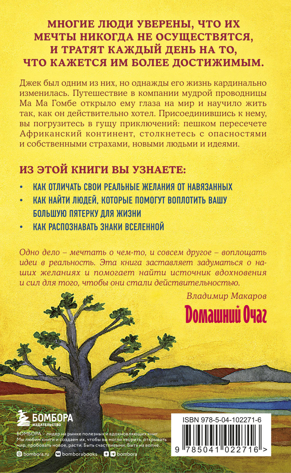 У каждого из нас есть своя Большая Пятерка - заветные мечты, воплощение которых будет означать то, что наша жизнь удалась, причем именно в том смысле, в котором мы сами определяем. Порой их сложно определить, но это не значит, что нужно останавливаться и опускать руки. Следует просто начинать двигаться в ту сторону, которая вроде бы кажется желанной, как сделал это Джек, отправившийся в Африку в поисках счастья. Он давно хотел увидеть континент, но не мог и вообразить тех событий и чувств, которые захлестнут его в путешествии.| Издательство | Форс Украина ООО |