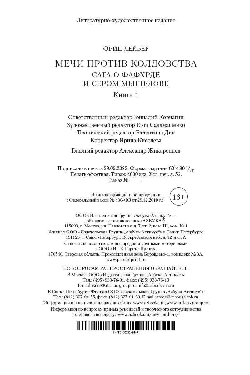 Сага о Фафхрде и Сером Мышелове. Книга 1. Мечи против колдовства