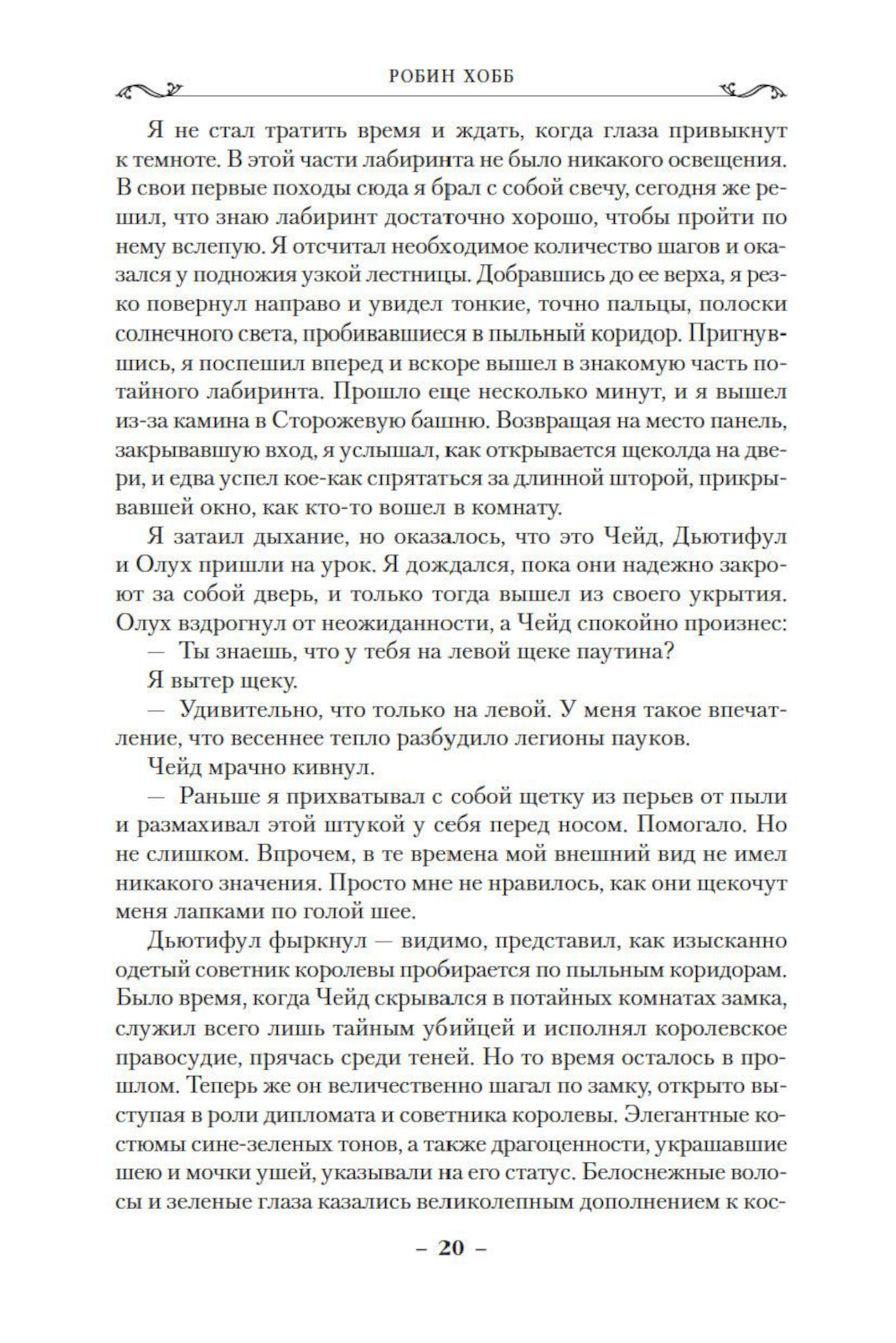 Один из Внешних островов почти полностью покрыт льдом. Говорят, что люди здесь не живут - в самом деле, как можно жить на коварном леднике, где под мягким снегом кроются зловещие расселины, где дуют безжалостные ветры? Говорят, здесь спит дракон. Огромный черный дракон по имени Айсфир. Говорят, он восстанет, чтобы защитить острова, когда придет враг... Но мало ли что говорят. Здесь, на Аслевджале, решится судьба Белого Пророка. Здесь его ждет верная, предсказанная им самим смерть. Здесь решится судьба Шести Герцогств и Внешних островов - быть или не быть крепкому и надежному союзу. Здесь решится судьба мира - будут ли в небесах снова парить драконы или люди останутся его полновластными хозяевами. Здесь решится все. А решать придется одному человеку. Изменяющему по имени Фитц Чивэл Видящий. «Книга Робин Хобб «Судьба шута» выходит в новой редактуре. Перевод глоссария совпадает с остальными книгами цикла «Сага о шуте и убийце».| Издательство | Азбука |