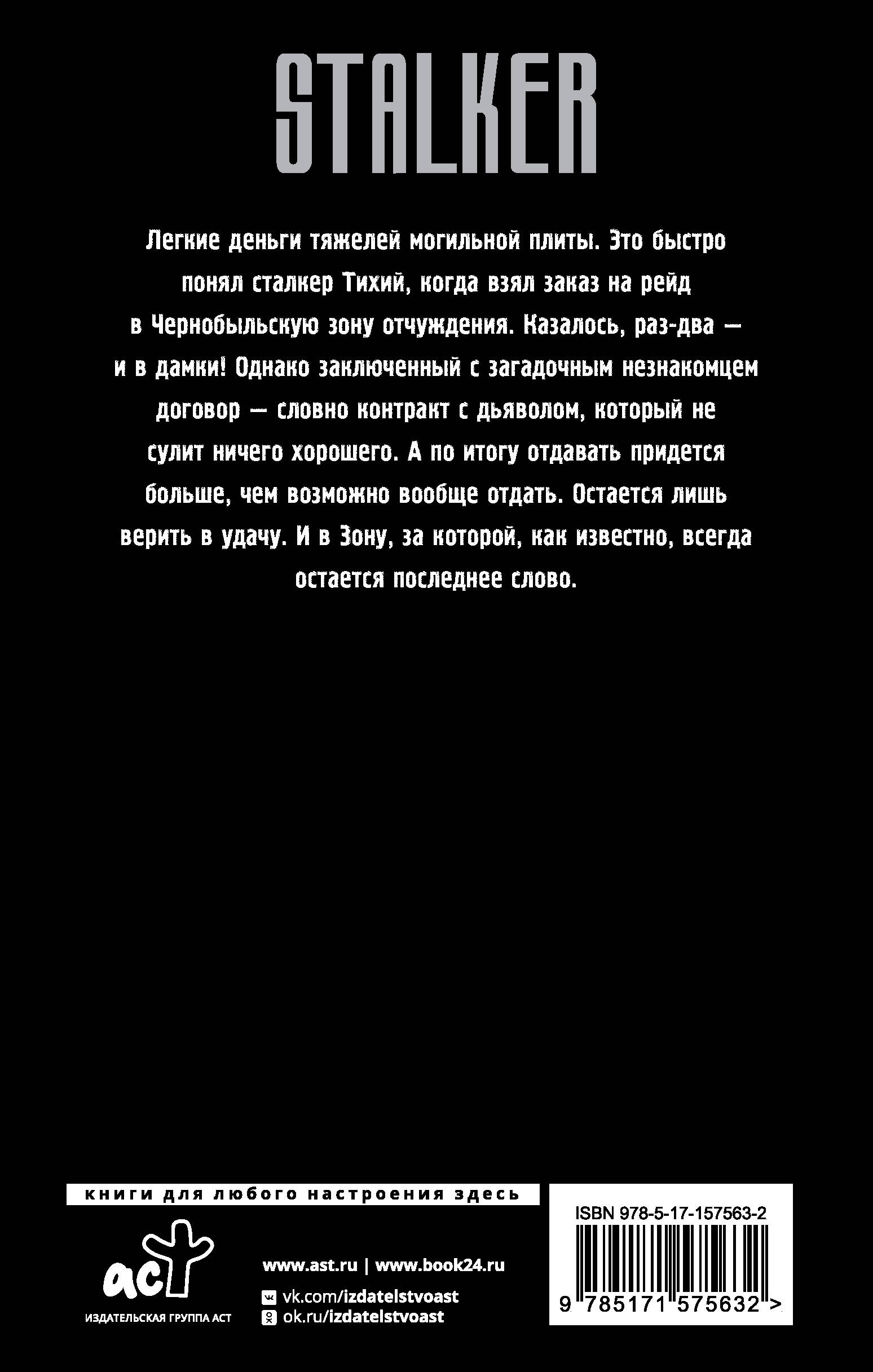 Легкие деньги тяжелей могильной плиты. Это быстро понял сталкер Тихий, когда взял заказ на рейд в Чернобыльскую зону отчуждения. Казалось, раз-два - и в дамки! Однако заключенный с загадочным незнакомцем договор - словно контракт с дьяволом, который не сулит ничего хорошего. А по итогу отдавать придется больше, чем возможно вообще отдать. Остается лишь верить в удачу. И в Зону, за которой, как известно, всегда остается последнее слово.
