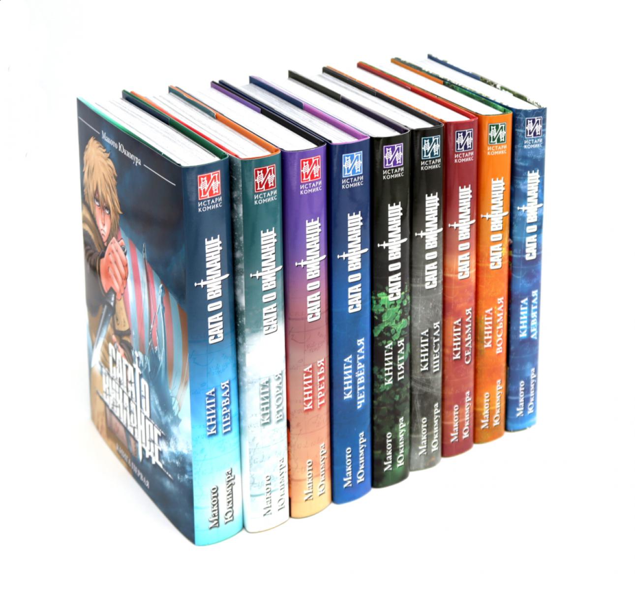 Комплект состоит из девяти томов манги «Сага о Винланде». На рубеже веков жило племя жестоких и могучих мореплавателей, позже прозванных викингами. И у одного из них - Торса, воина, считавшегося живой легендой. - родился сын, которого нарекли Торфинном. Всё детство он провёл в Исландии, слушая рассказы старика Лейфа о неизведанных морях и неизвестных странах, об опасностях, подстерегающих путешественников, и о далёкой прекрасной земле Винланде. Однажды в их родную деревушку прибыл большой корабль, полный людьми, назвавшимися йомсвикингами. Они искали отца Торфинна, а когда нашли, то потребовали у того отправиться на войну, разгоревшуюся в Англии. Так мальчик отправился в долгое и опасное путешествие…| Издательство | ИД Истари Комикс |