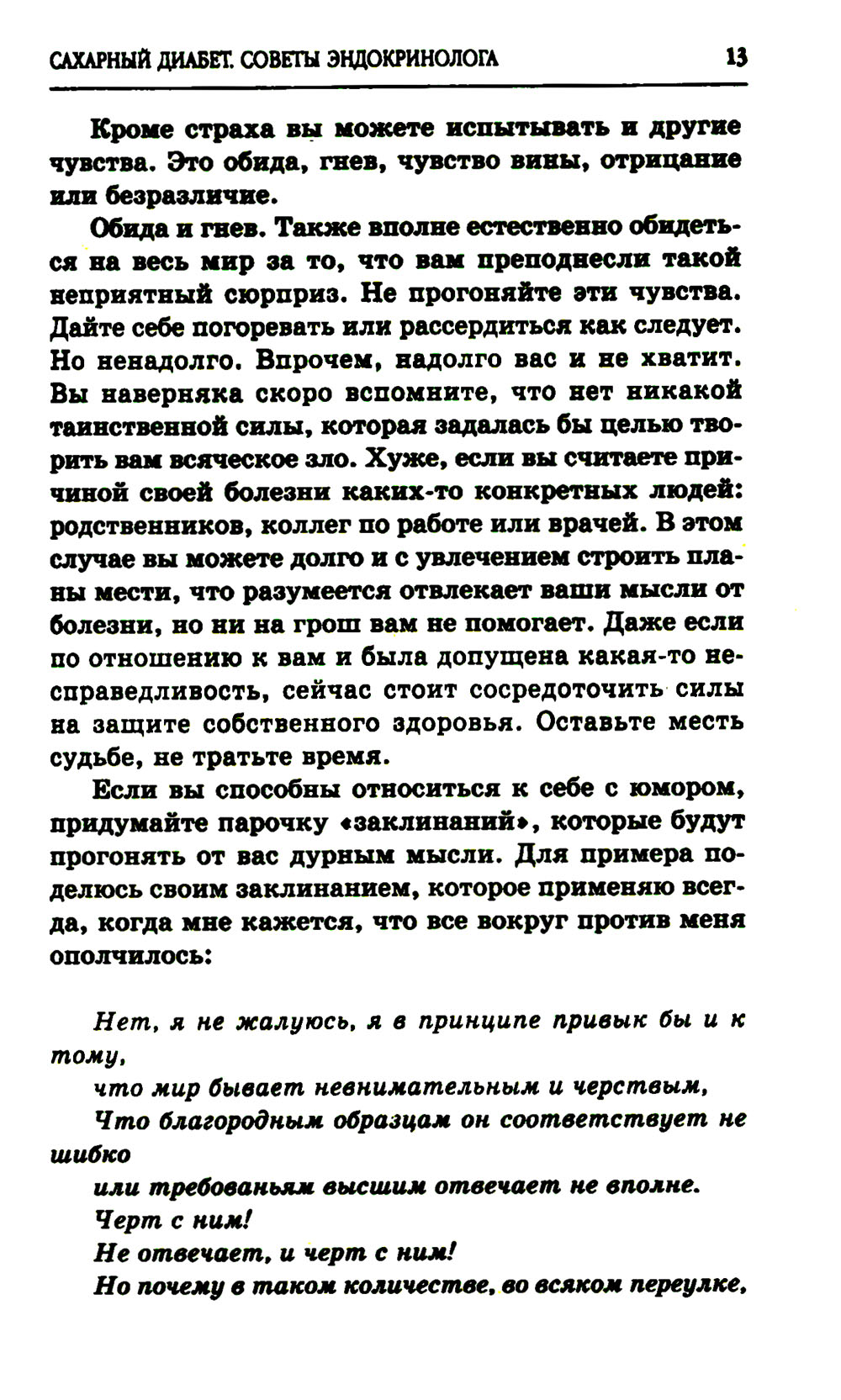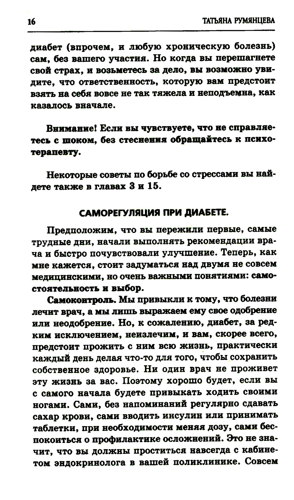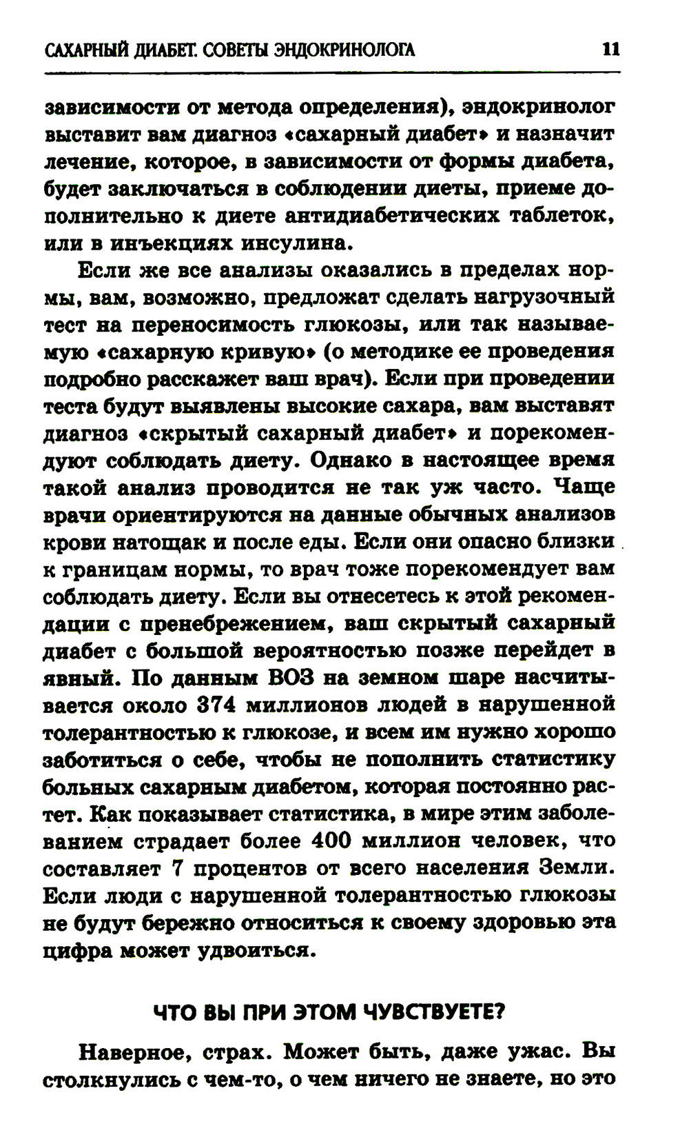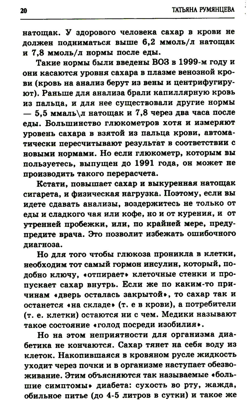 Диабет - не приговор. Диабет - это болезнь образа жизни. Изменив образ жизни, можно взять диабет под контроль и вести полноценную жизнь, а иногда - и полностью вылечиться. Эта книга - своего рода приём у врача-эндокринолога. На нём врач обстоятельно и не торопясь ответит вам на все самые важные и насущные вопросы, касающиеся диабета: О причинах заболевания, о видах диабета и разных подходах к их лечению. Об острых и хронических осложнениях, их лечении и профилактике. Возможна ли при диабете нормально протекающая беременность? Как решать психологические проблемы? Также мы поговорим о физкультуре при сахарном диабете, о диете и как разнообразить меню. Вы получите информацию о подсластителях. Не будут обойдены и другие важные для каждого больного вопросы: Какие документы необходимы диабетику? Как наладить отношения со своим лечащим врачом? С какими врачами кроме эндокринолога вам необходимо консультироваться? Какие анализы вам необходимы и как их правильно сдавать? А самое главное, что вы узнаете из книги - как, несмотря ни на что, не потерять качество жизни.