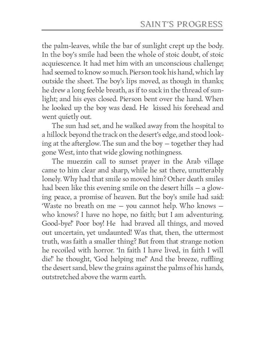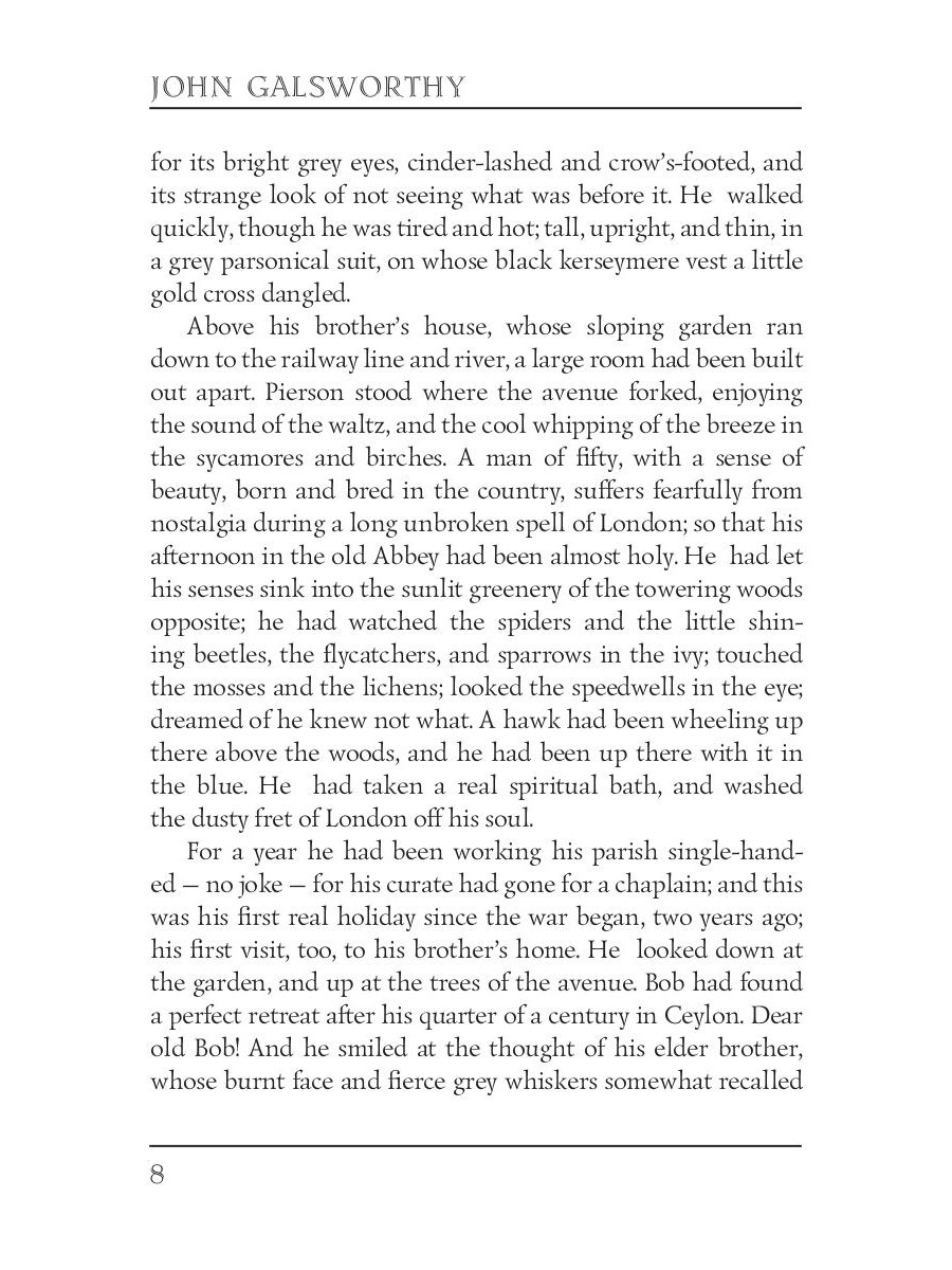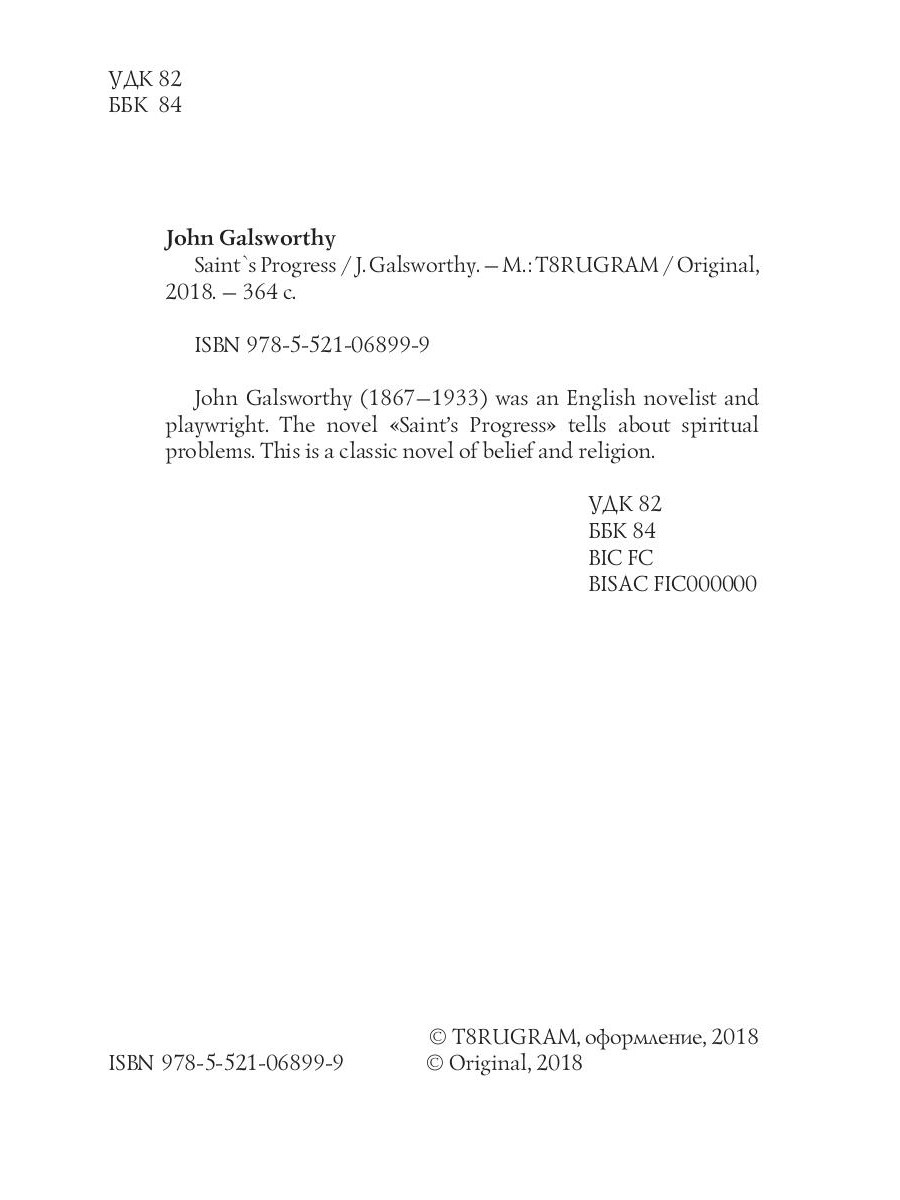 John Galsworthy (1867-1933) was an English novelist and playwright. The novel «Saint's Progress» tells about spiritual problems. This is a classic novel of belief and religion.