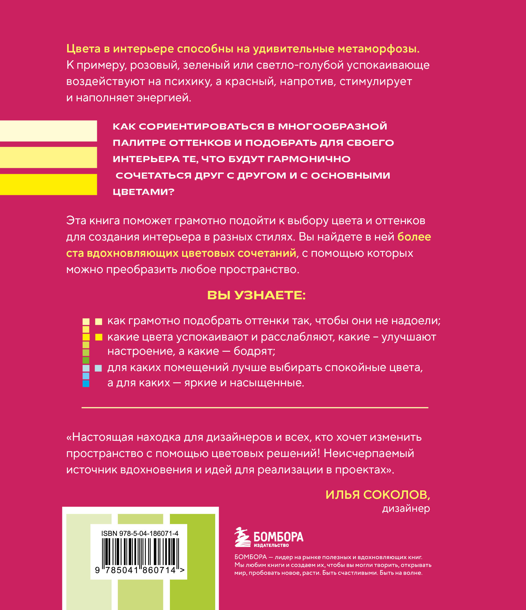 Комплект из 2-х книг -Дизайн интерьера без дизайнера. Краткий гид по созданию стильного дома от обмера до обстановки (новое издание) Любой мастер по ремонту скажет вам, насколько важно наличие дизайн-проекта перед тем, как будут шлифоваться полы, ломаться перегородки или клеиться обои. Но само словосочетание "дизайн-проект" уже кажется сложным! Как же без профессионального дизайнера и специальных обучающих курсов понять, с чего начать воплощать свои мечты о стильном, эргономичном и уютном доме? В этой книге собрана только важная и нужная базовая информация, которая станет удобной шпаргалкой для всех, кто хочет создать дизайн-проект самостоятельно. В ней представлены все этапы выполнения проекта с четкими пошаговыми рекомендациями, а также советы по планировке, зонированию, описание популярных стилей и полезные чек-листы, облегчающие создание проекта. Во второй части описывается процесс выполнения ремонта для понимания последовательности действий и возможности оценить текущий этап и масштаб работы. Также вы найдете рекомендации по расчету бюджета, чтобы ремонт оставался под вашим контролем и не превратился в бесконечный процесс. -Цветомания. Вдохновляющие решения и готовые цветовые палитры для создания вашего интерьера в любом стиле Эта книга - вдохновляющее руководство по искусству подбора и сочетания цветов в интерьере. Она поможет вам грамотно подойти к процессу создания атмосферы в доме, оформив его в разных стилях - от классического до современного. Внутри вы найдете более ста цветовых комбинаций, которые преобразят любое помещение, делая его более просторным, уютным или интимным. Благодаря ей вы узнаете, что необходимо учитывать при выборе цветовых решений, как грамотно подобрать оттенки и правильно расставлять акценты с помощью основного цвета и подходящей ему палитры.| Издательство | ООО "Издательство "Эксмо" |