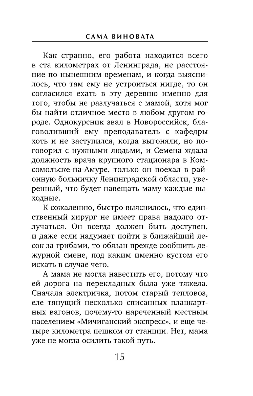 Не судите, да не судимы будете. Только Ирине приходится нарушать эту заповедь, потому что она работает судьей. По долгу службы она обязана брать на себя ответственность за чужую судьбу, а порой и жизнь. Это трудная работа, потому что при внимательном рассмотрении все может оказаться не тем, чем кажется, и вся система обвинений рассыпается в прах, если взглянуть на нее под другим углом. Где же истина? Ответить на этот вопрос порой очень непросто, а тут еще давят вышестоящие инстанции, требуя вынести тот приговор, который будет выгоден лично для них. Принять верное решение Ирине помогают (или мешают) народные заседатели, которые меняются на каждом процессе. И Ирина, и ее помощники - все люди с непростыми судьбами, с проблемами, им предстоит не только решить чужую судьбу, но и разобраться с собственной жизнью. Как говорил Гиппократ: «Жизнь коротка, наука обширна, случай шаток, опыт обманчив, суждение затруднительно». Доказательства редко бывают исчерпывающими и убедительными на сто процентов, и человек несовершенен, редко когда удается судить совершенно беспристрастно, поэтому поиск правильного решения труден и мучителен. Но он необходим.| Издательство | Эксмо |
