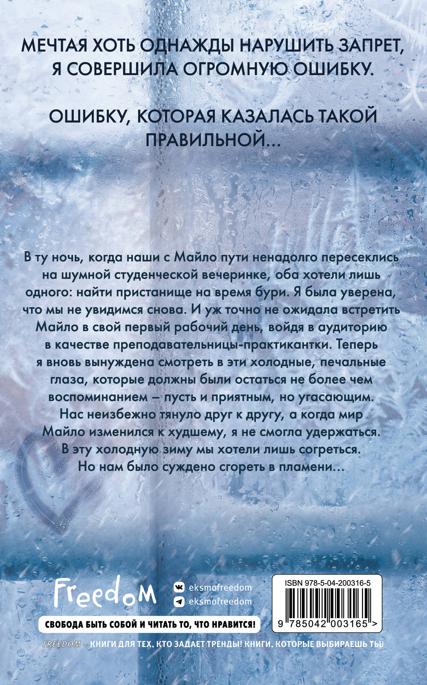 Новый трогательный и чувственный роман о запретной любви от автора бестселлеров Бриттани Ш. Черри! Откровенная и искренняя история об исцелении душ. Книга, которая заставит вас сопереживать, наслаждаться и любить. «Душераздирающая история, которая прекрасно уравновешена сладкой остротой, трепетной радостью и успокаивающим удовлетворением. Это изысканное волшебство!» Мечтая хоть однажды нарушить запрет, я совершила огромную ошибку. Ошибку, которая казалась такой правильной… В ту ночь, когда наши с Майло пути ненадолго пересеклись на шумной студенческой вечеринке, оба хотели лишь одного: найти пристанище на время бури. Я была уверена, что мы не увидимся снова. И уж точно не ожидала встретить Майло в свой первый рабочий день, войдя в аудиторию в качестве преподавателя-практиканта. Теперь я вновь вынуждена смотреть в эти холодные, печальные глаза, которые должны были остаться не более чем воспоминанием - пусть и приятным, но угасающим. Нас неизбежно тянуло друг к другу, а когда мир Майло изменился к худшему, я не смогла удержаться и, несмотря на запрет, прижалась еще ближе. В эту холодную зиму мы хотели лишь согреться. Но нам было суждено сгореть в пламени...| Издательство | ООО "Издательство "Эксмо" |